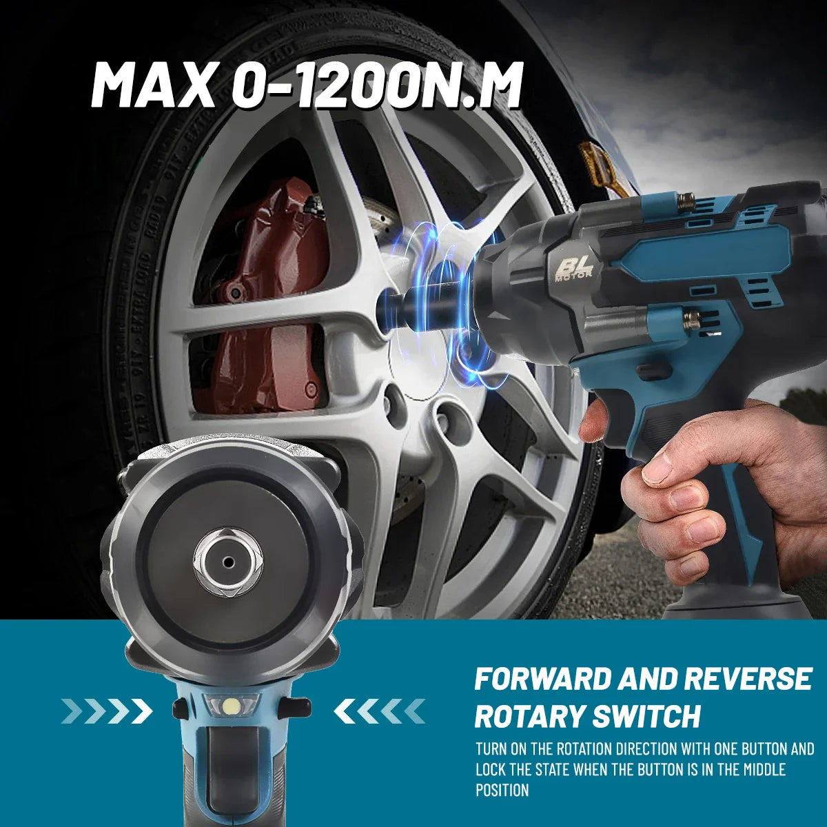 1200N.M Torque Brushless Electric Impact Wrench 1/2 inch Cordless Wrench Screwdriver Power Tools for Makita 18V Battery power tools