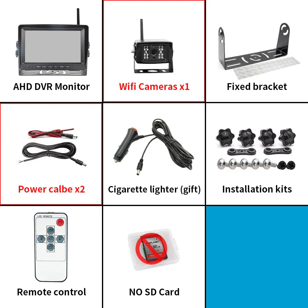 1280x720 High Definition AHD Wireless 7-inch Truck DVR Monitor Night Vision Reverse Backup Recorder Wifi Camera For truck