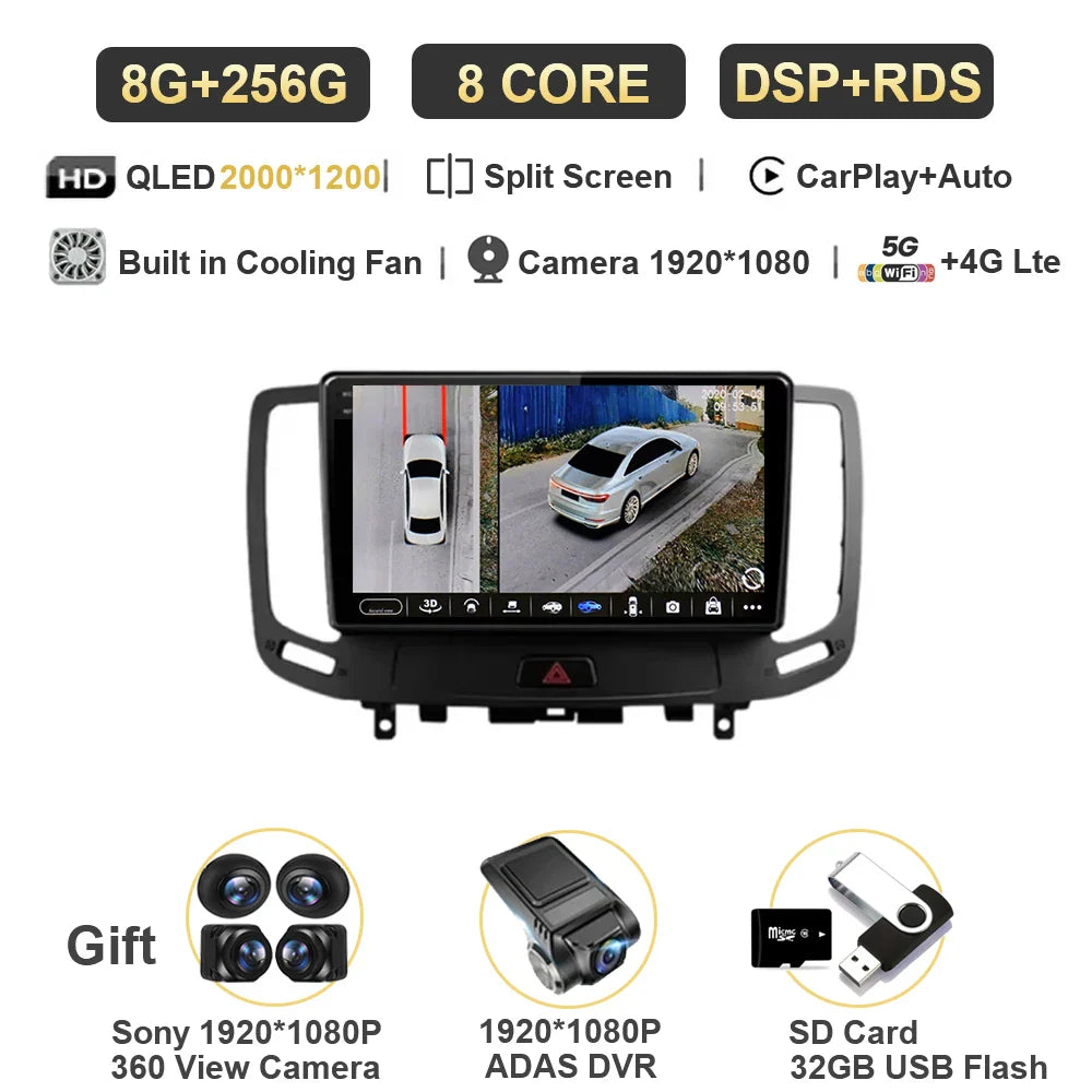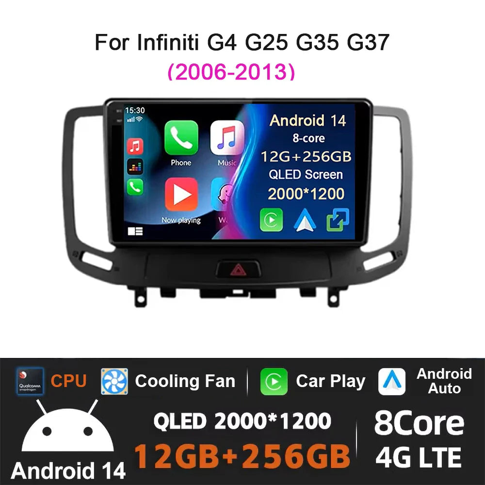12G+256G For Infiniti G4 G25 G35 G37 2006 - 2013 Car Radio Multimedia Video Player Navigation GPS Android Carplay No 2 Din DVD