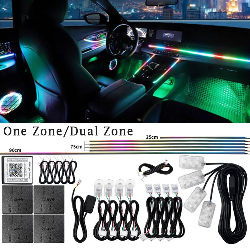 14/18 in 1 Led Car Ambient Lights RGB Symphony 213 Color Rainbow Acrylic Strips Atmosphere Lamp Kit Support One Zone Dual Zone