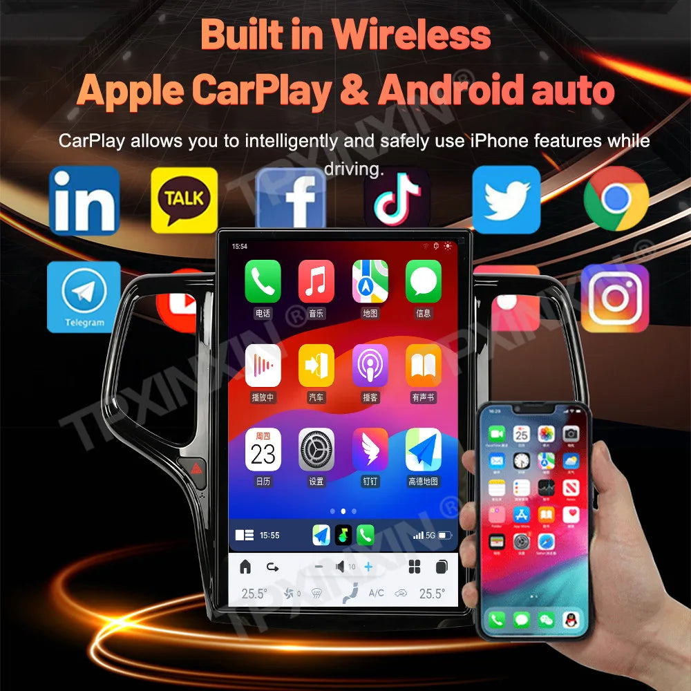 14.4 Inch Screen Qualcomm Android Auto Screen Player Head Unit For Jeep Grand Cherokee 2014~2024 GPS Navigation Radio Receiver