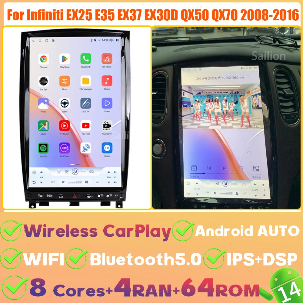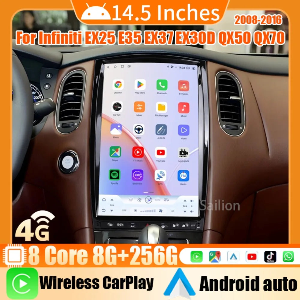 14.5" Android 14 For Infiniti EX25 E35 EX37 EX30D QX50 QX70 2008-2016 Car Radio Carplay 2.5K Screen Tesla Style Stereo 4G Player