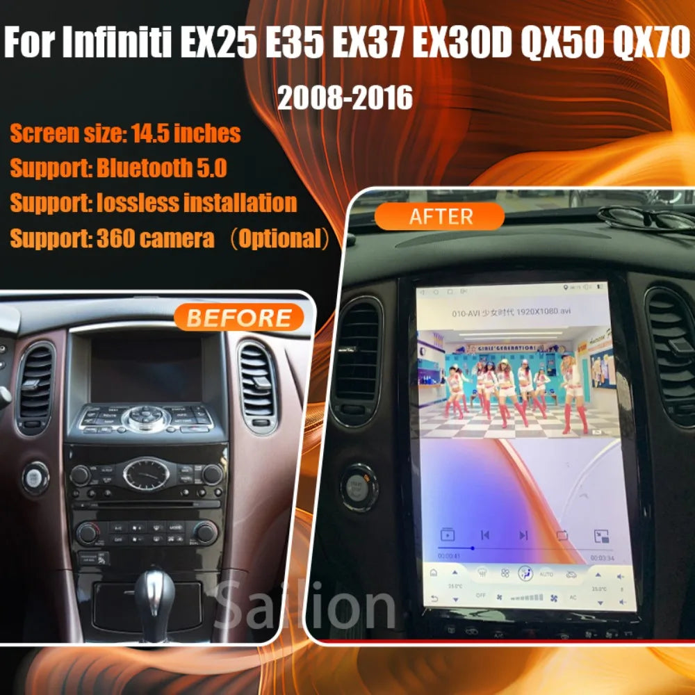 Smart giant vertical screen upgrade kit for INFINITI EX25 E35 EX37 EX30D QX50 QX70 14.5 inches | Designed for 2008-2016 INFINITI | -selling in Europe, Middle East and North America Main features Wireless CarPlay + Android AUTO
