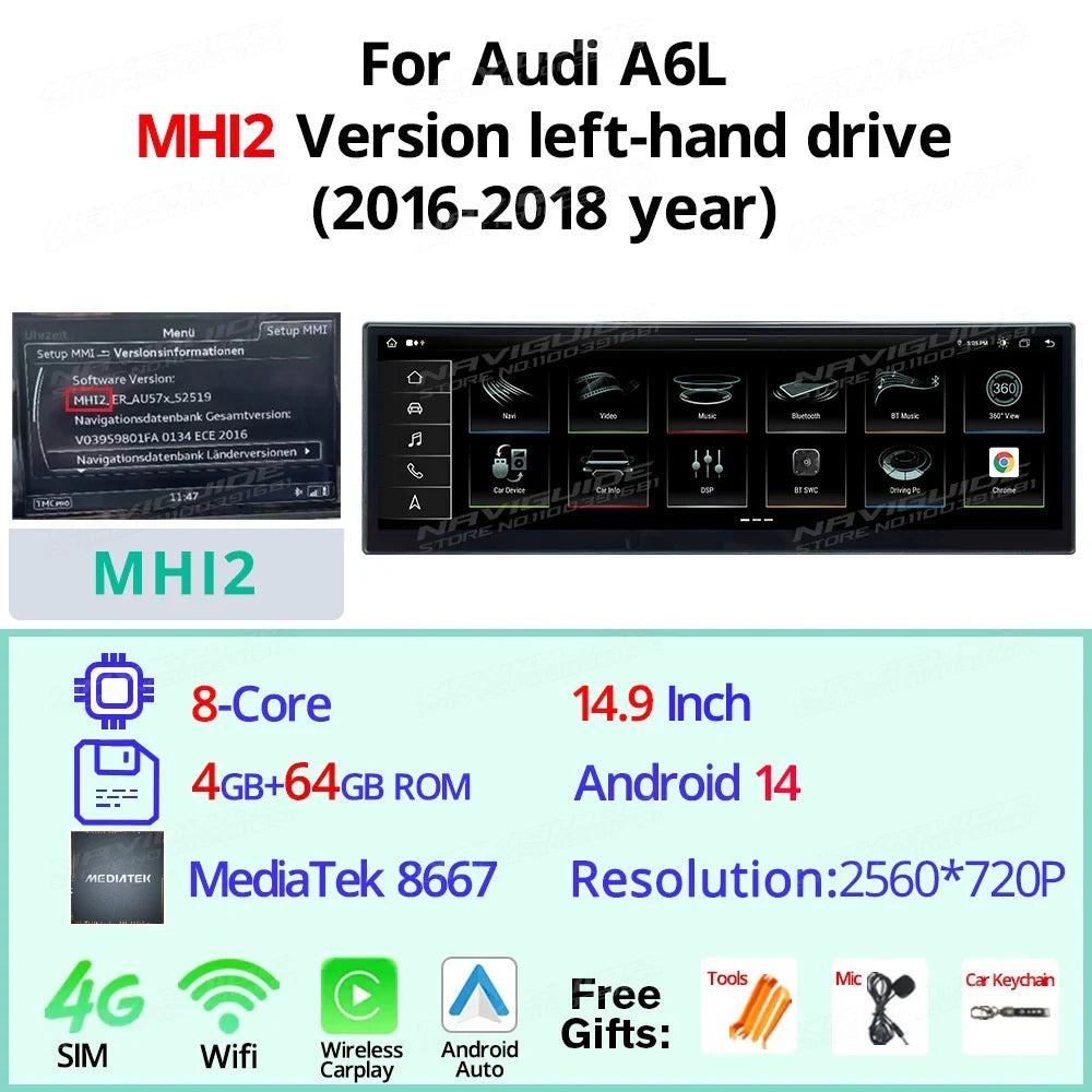 14.9" Android14 Car Radio For Audi A6L 2012-2018 Car Multimedia Player Wireless Carplay Android Auto Smart car system Navigation