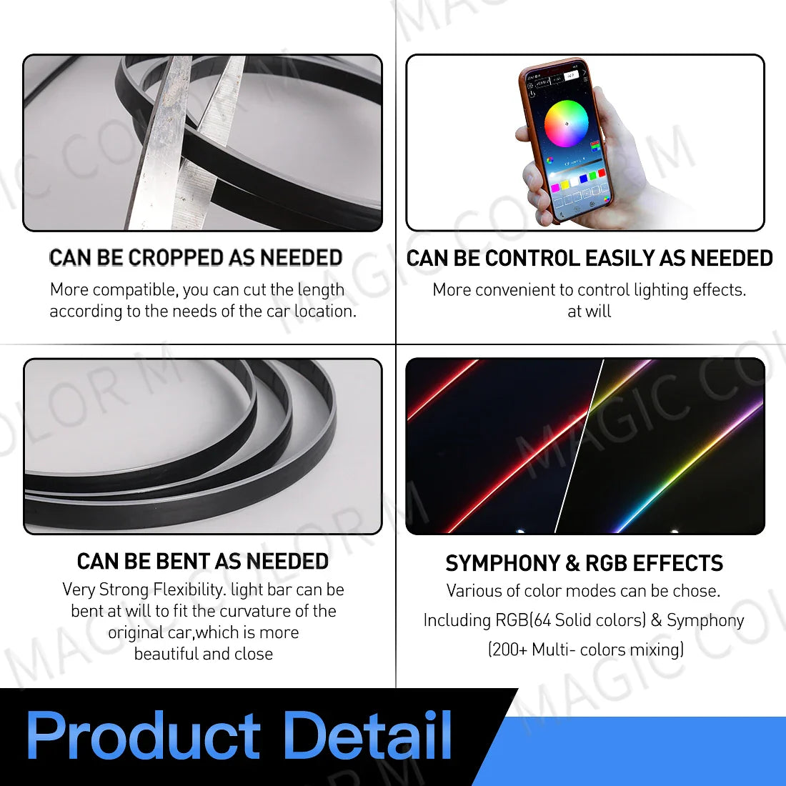 140cm 55.12" Car Sunroof Ambient Lights LED Skylight Symphony RGB Interior Acrylic Strips Decoration Atmosphere Lamp App Control