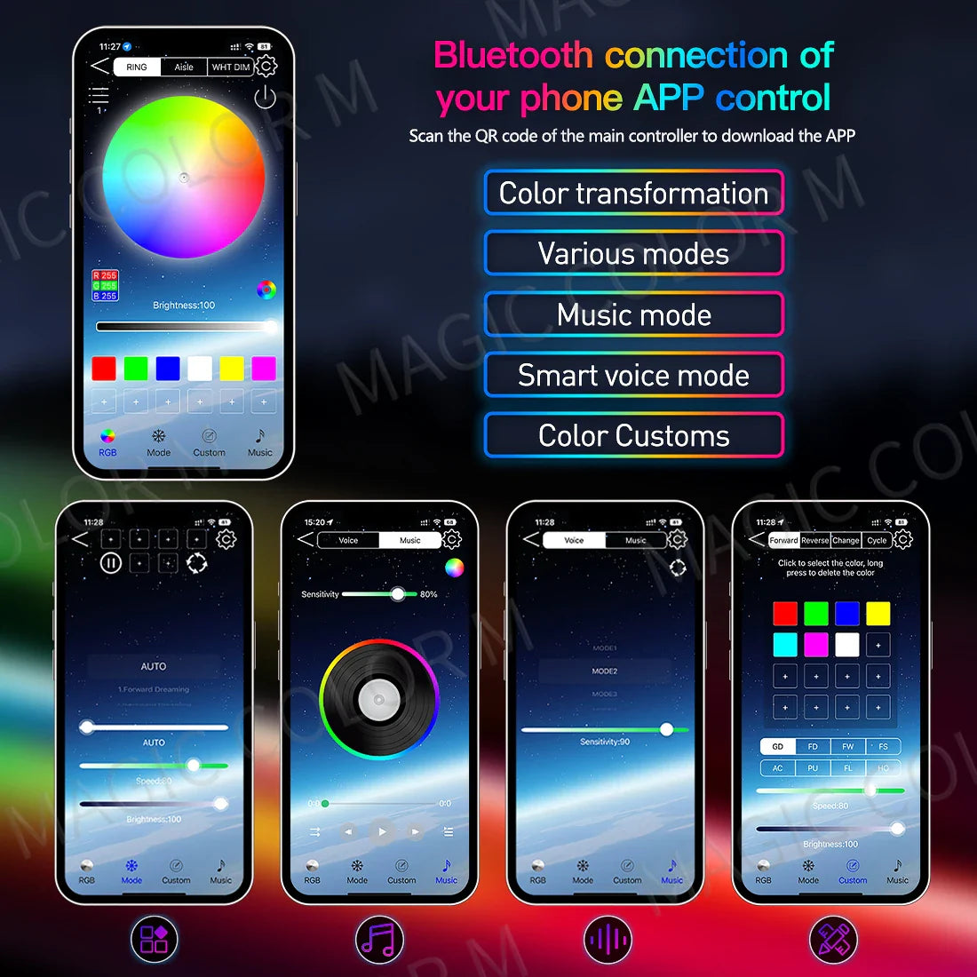- APP Bluetooth can easily control the ON/OFF and color modes changing