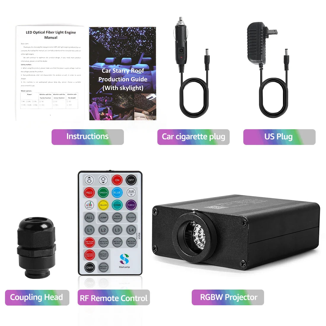 16W Car Roof Starlight Headliner Light Kit For Tesla Car Home APP Remote Controll Starry Sky RGBW Fiber Optic Ceiling Star Light Specification: Note:NO Twinkle Effect Product me 1: Light source machine