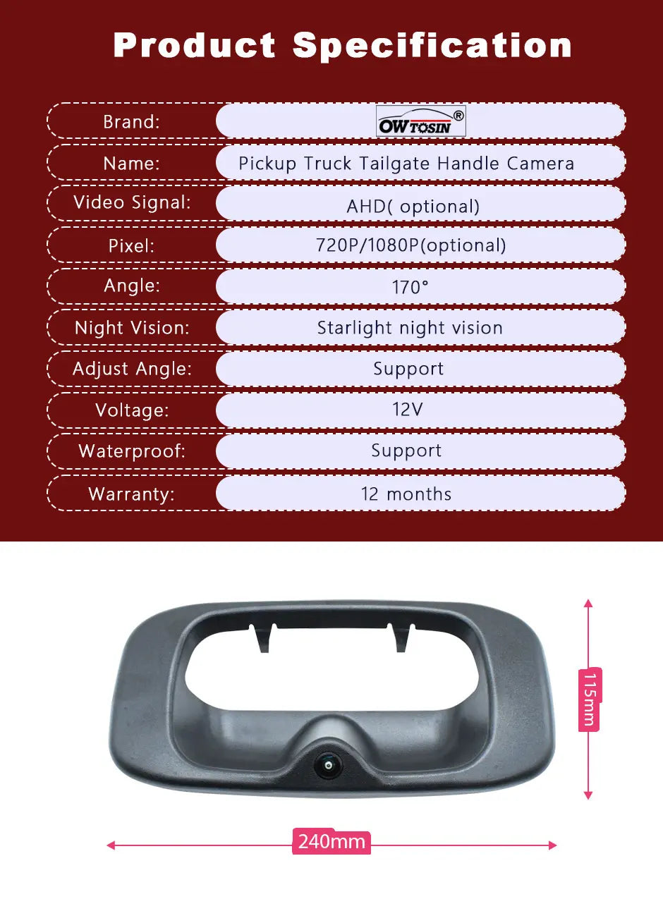 1920*1080P AHD 170° Pickup Trunk Handle Vehicle Camera For Chevrolet Silverado GMC Sierra 1999-2007 Reverse Car Camera AHD technology is High-definition video sigls, it adopts advanced Y/C sigl separation and filtering technology, bright color separation, sigl filtering, 3D noise reduction technology, higher image clarity and better image reproduction Highly integrated 2053HD chips, Max HD 1080P Pixel 170 degrees 6 Glass Fisheye Lens
