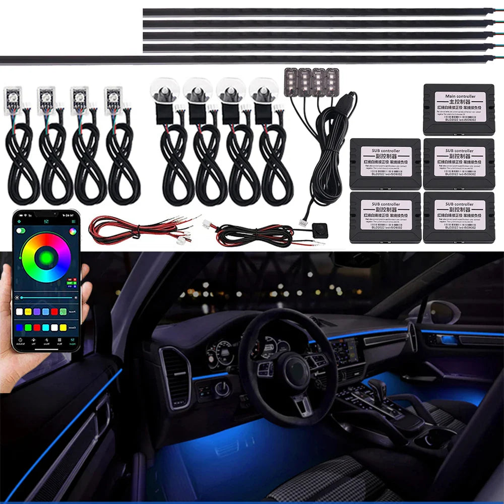 18 In 1 Car LED Ambient Light Interior Lighting RGB Neon Acrylic Strip Backlight Accessories For Auto Decoration Atmosphere Lamp