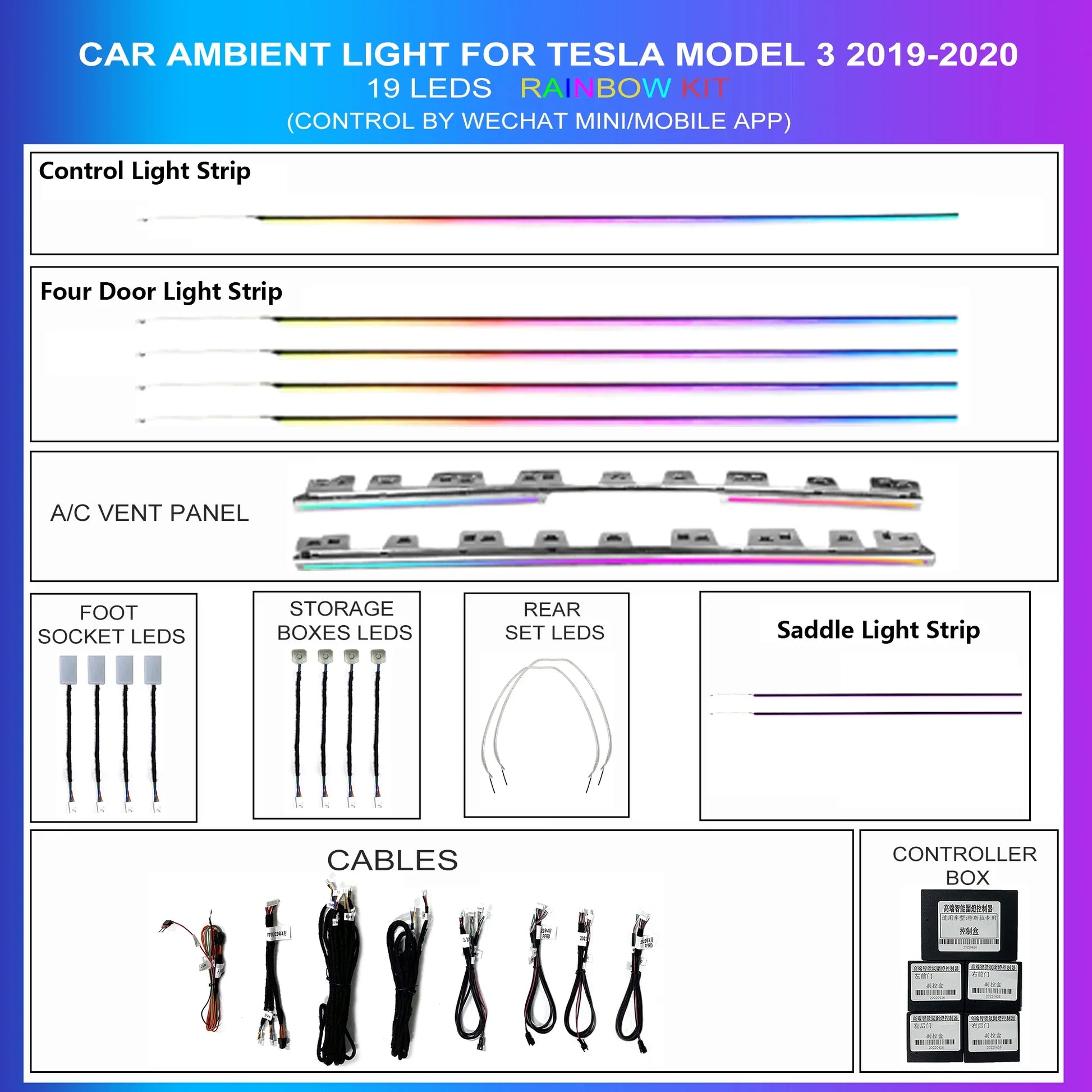 19 in 1 Car Interior Symphony Ambient Light Kit For Tesla Model 3 2019-2020 Acrylic Guide Fiber Strip Decoration Atmosphere Lamp