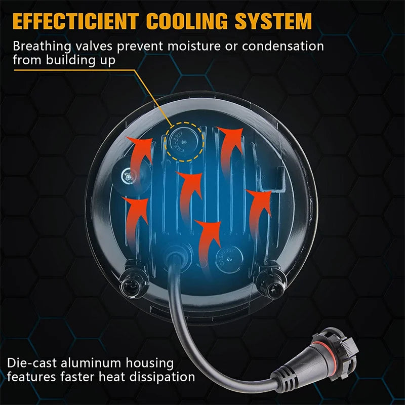- Excellent heat dissipation system - The upgraded aluminum radiator has a faster heat dissipation function integrated valve that allows the fog lamp to breathe, thus preventing moisture or condensation from accumulating