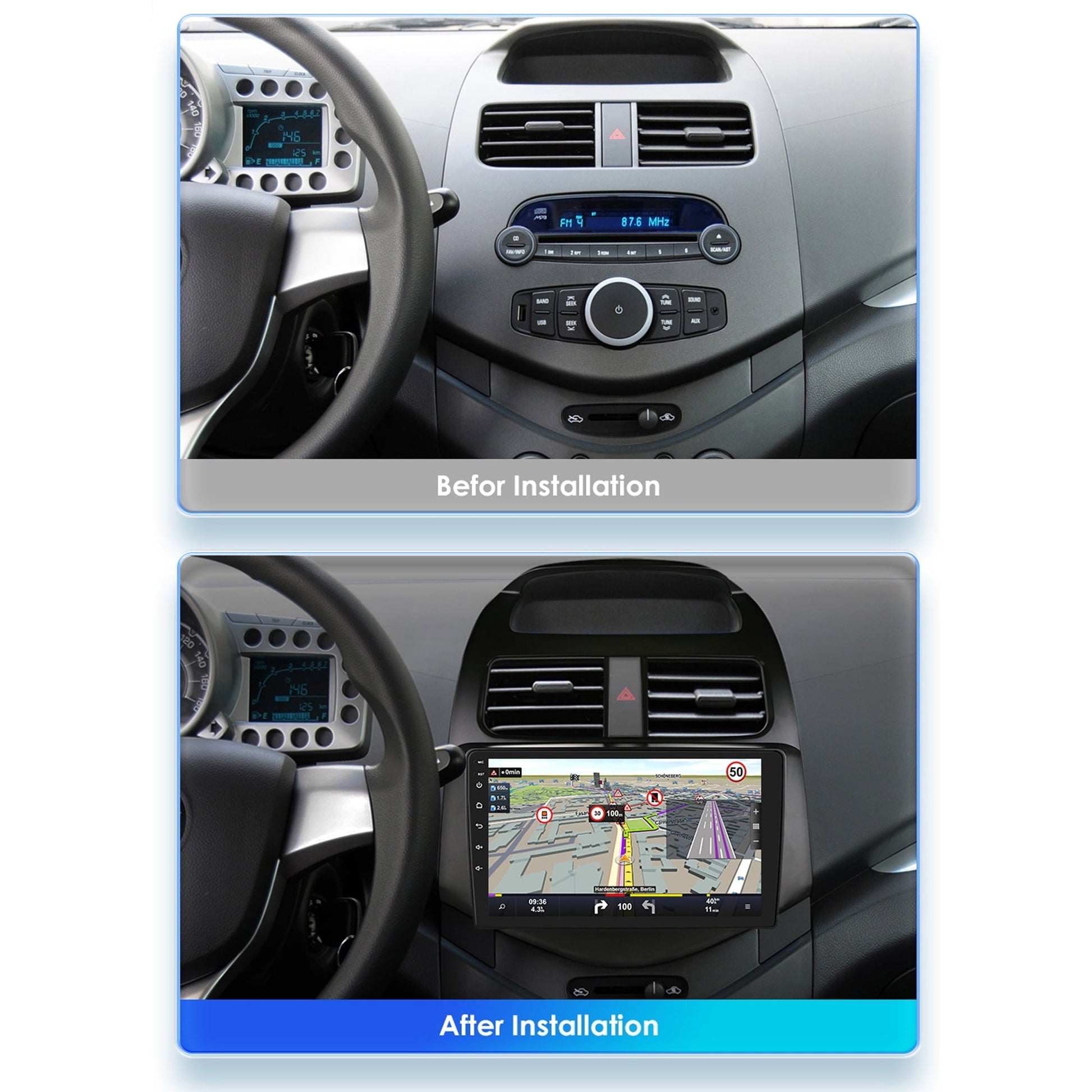 Compatible Vehicles: Chevrolet Spark Beat Matiz Creative 2010 2011 2012 2013 2014 Note: Before you make the purchase, please check if your car model is on the compatible list This unit is a 2 din radio with 9" touch screen You can watch videos and listen to music on this unit It's running Android 13 system, so most of Android Apps can be used on this unit, such as Youtube, Google Chrome, Facebook, etc