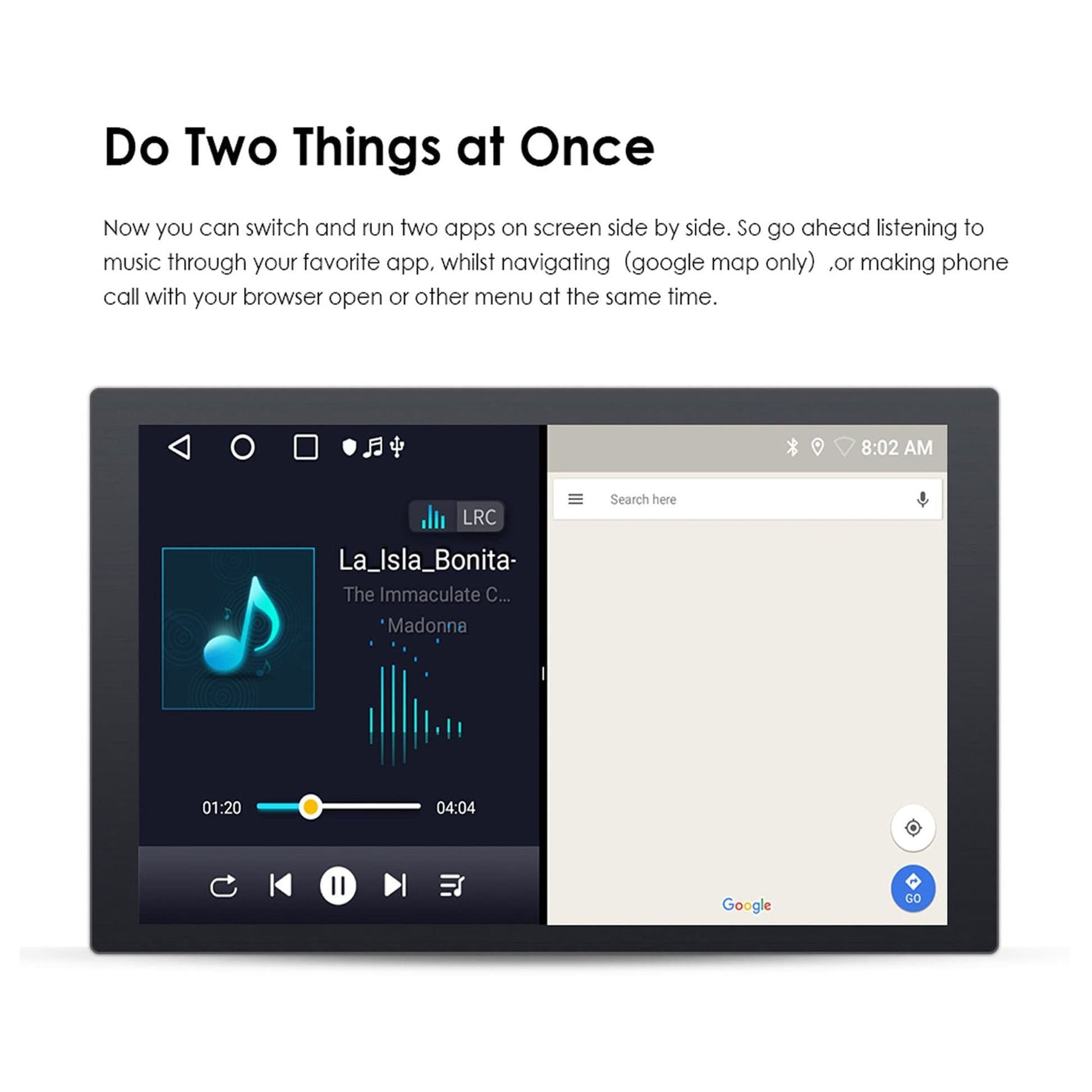 - vigation system: Google map, Sygic, Kudos are supported