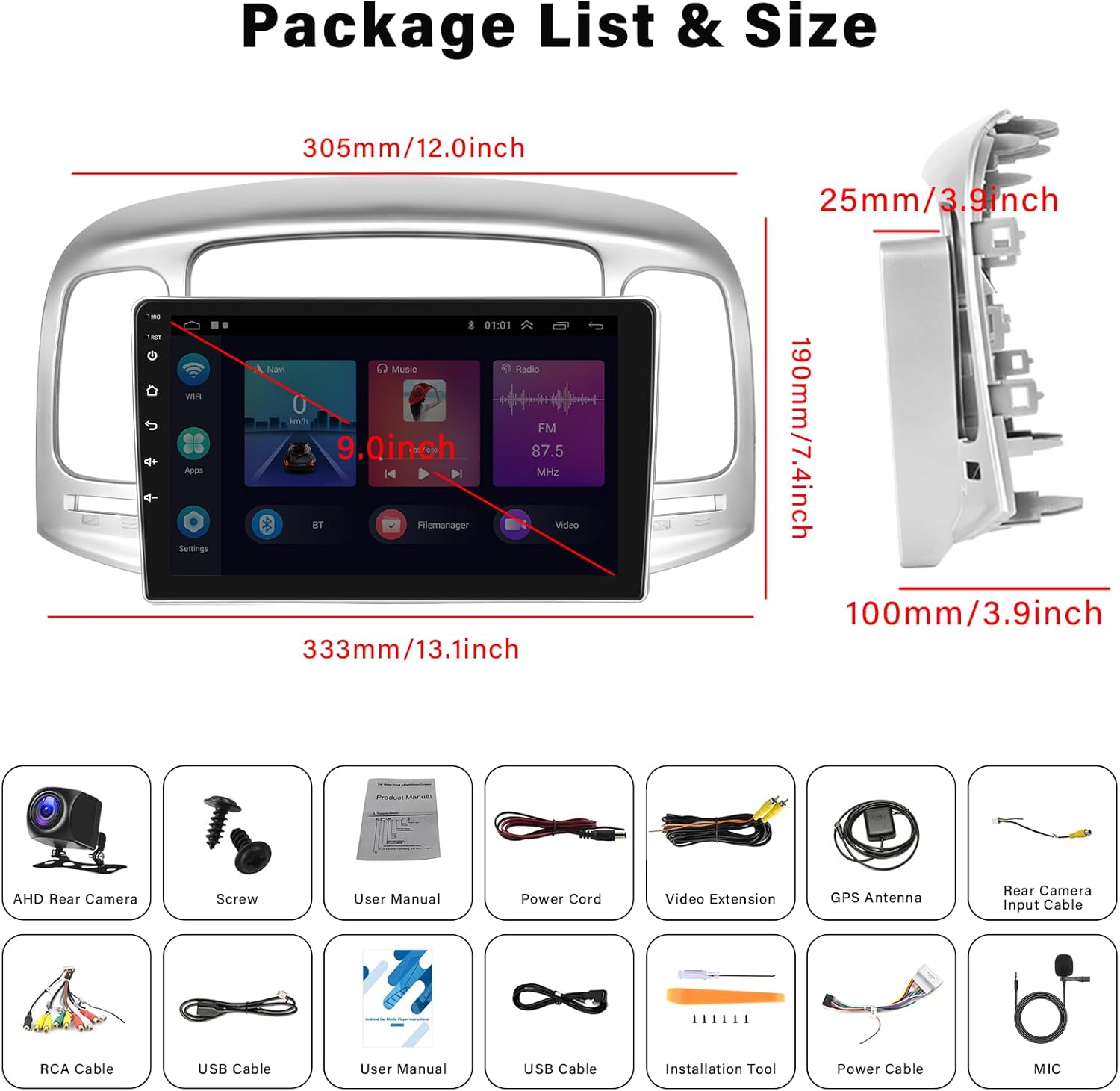 Product Description 2+64G 9 inch Android Car Stereo for Hyundai Accent 2006-2011 & Rear Camera & Microphone This 9-inch radio supports Apple Carplay/Android Auto/Mirror Link/GPS vigation/Bluetooth/Steering Wheel Control Function/FM RDS Radio/WiFi/EQ HiFi/Split Screen/Rear View Camera, etc Meet the daily needs of the car and bring a better experience to your journey