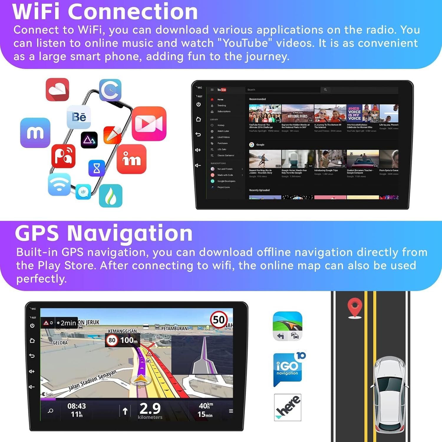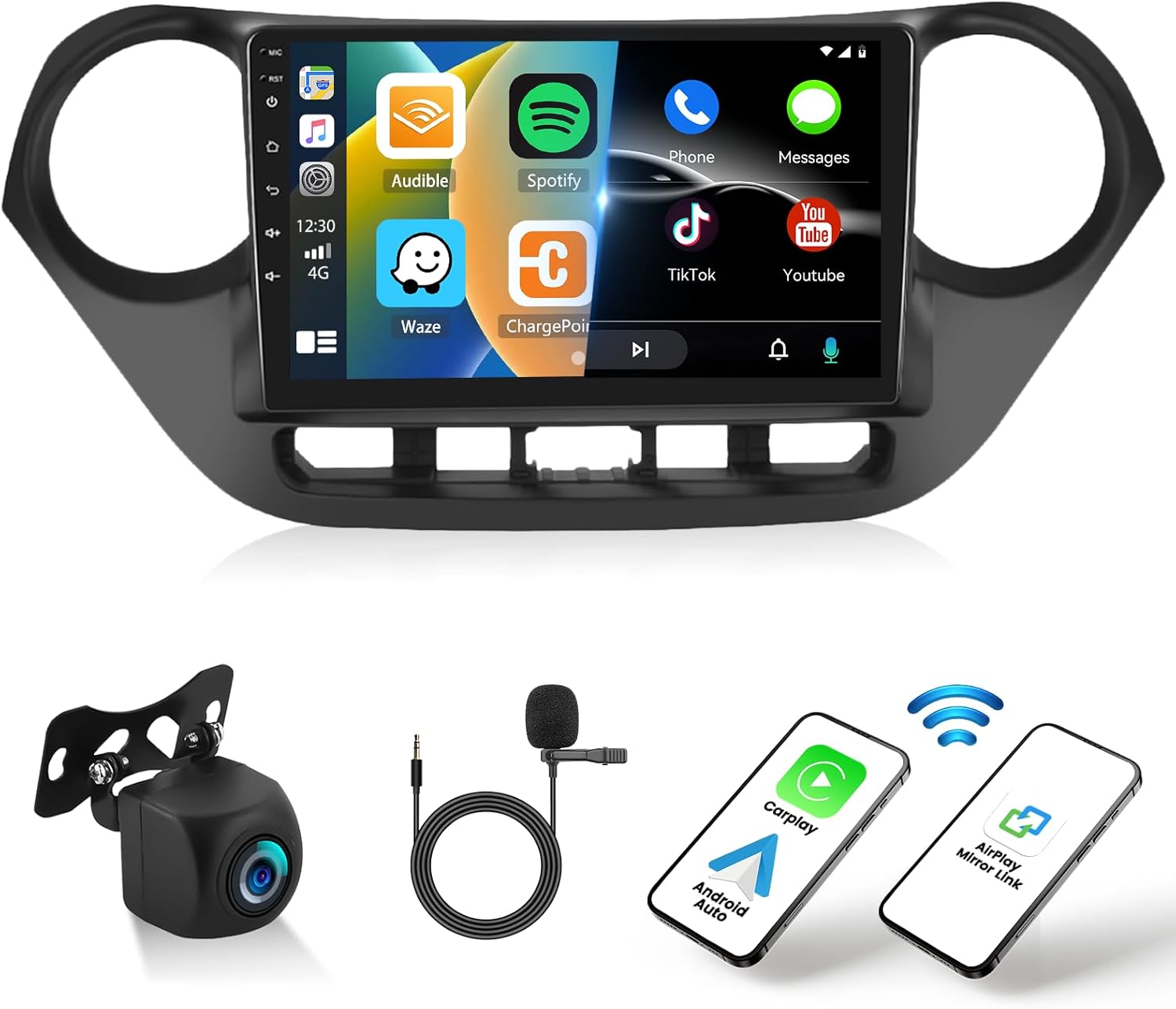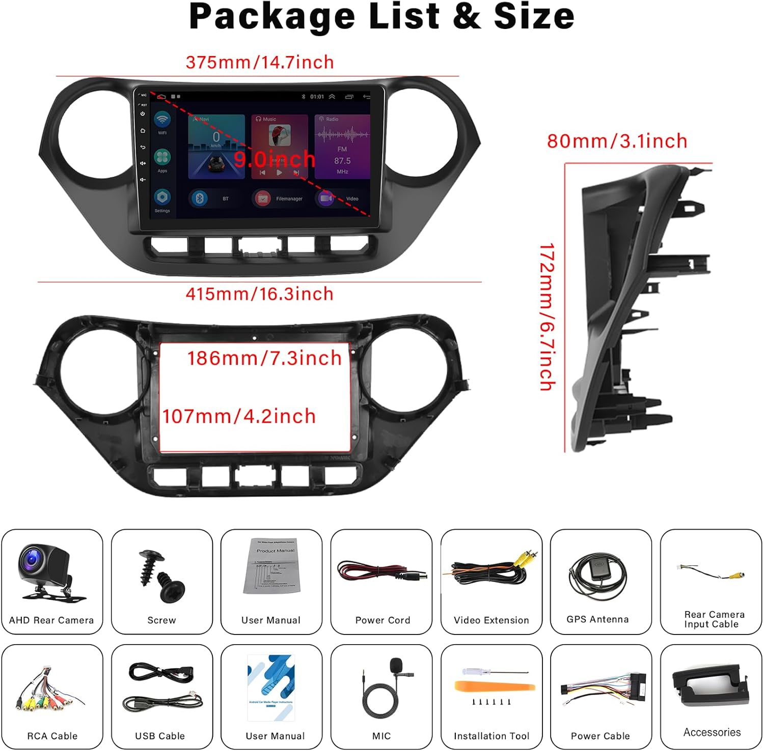 Product Description 2+64G 9 inch Android Car Stereo for Hyundai I10 2013-2018 & Rear Camera & Microphone This 9-inch radio supports Apple Carplay/Android Auto/Mirror Link/GPS vigation/Bluetooth/Steering Wheel Control Function/FM RDS Radio/WiFi/EQ HiFi/Split Screen/Rear View Camera, etc Meet the daily needs of the car and bring a better experience to your journey