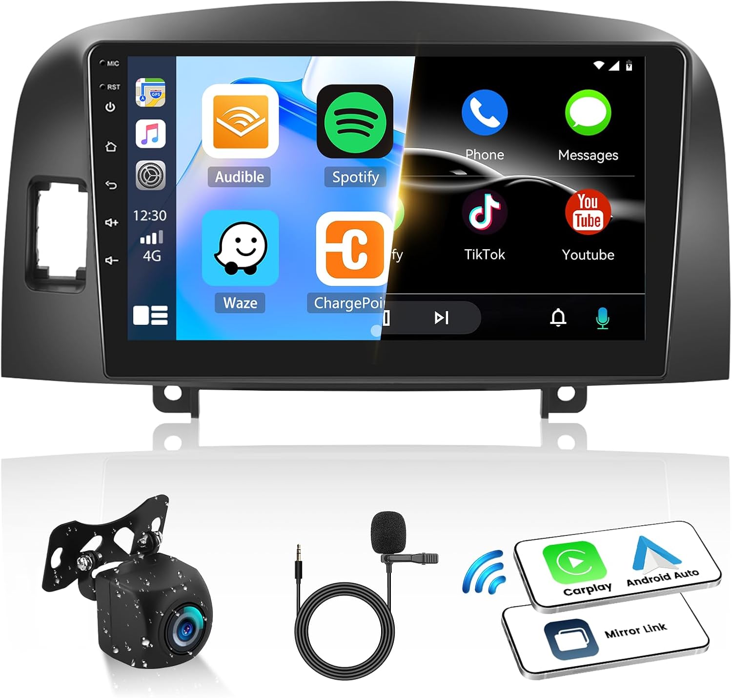 Product Description 2+64G 9 inch Android Car Stereo for Hyundai Sota NF 2004-2008 & Rear Camera & Microphone This 9-inch radio supports Apple Carplay/Android Auto/Mirror Link/GPS vigation/Bluetooth/Steering Wheel Control Function/FM Radio/WiFi/EQ HiFi/Split Screen/Rear View Camera, etc Meet the daily needs of the car and bring a better experience to your journey
