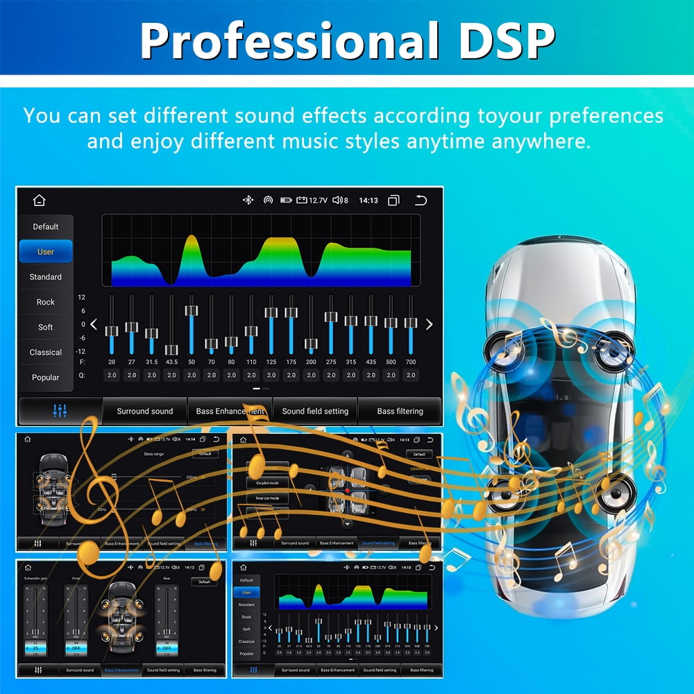 - The built-in Bluetooth and microphone allow you to make calls, listen to music, vigate maps, and more without hands-free control.Adjustable sound effects, click to enter Sound Effects to adjust and set your favorite sound effects