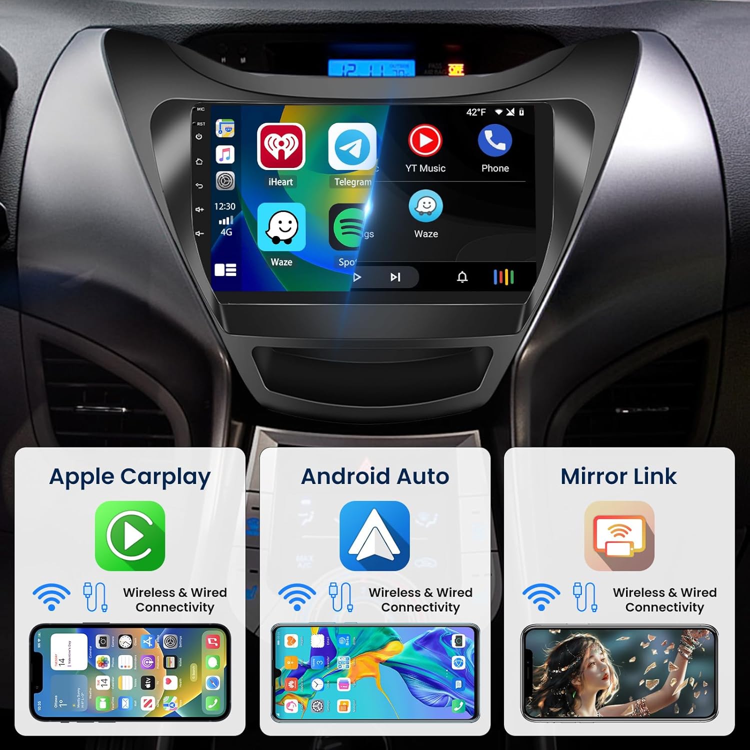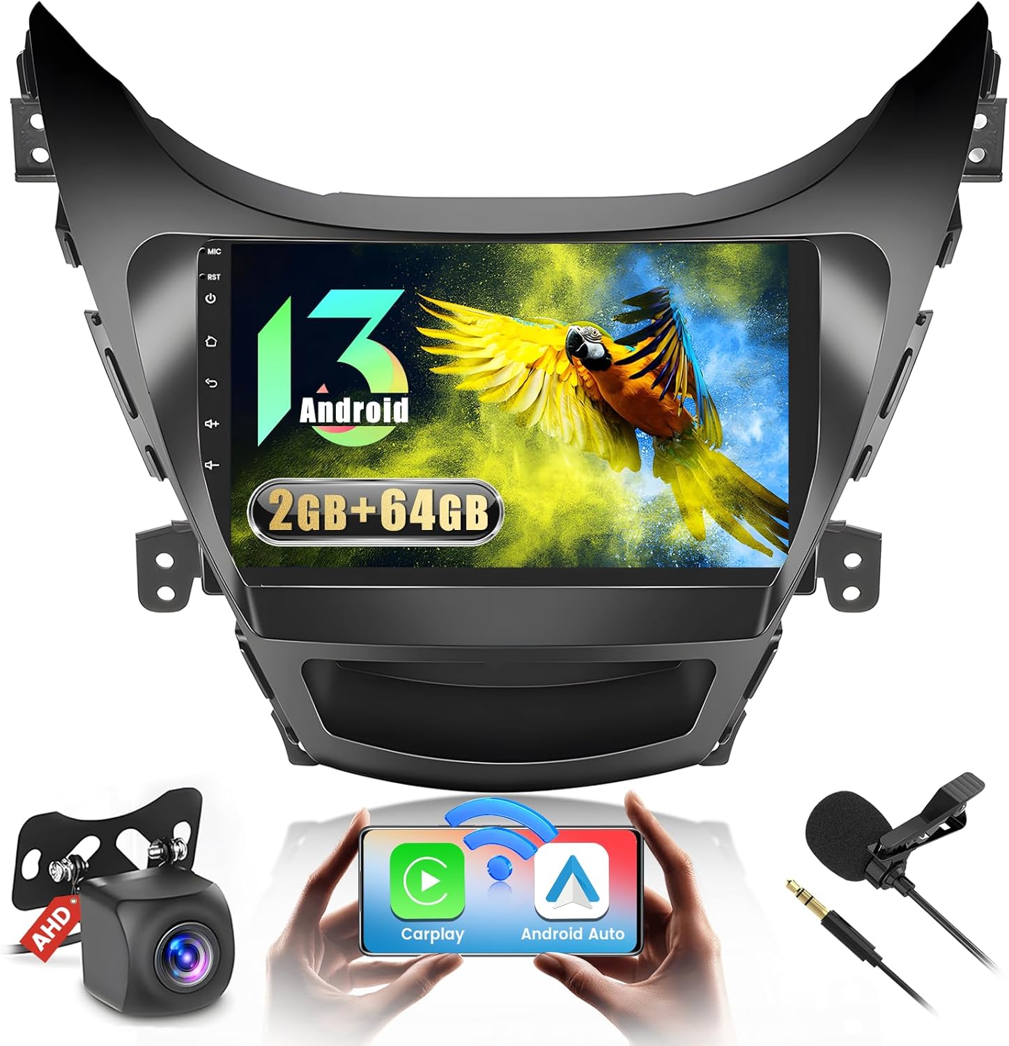 2+64G Inefala for Hyundai Elantra 2011-2013 Android 13 Car Radio Stereo Head Unit with Wireless Carplay&Android Auto, 9 Inch Touchscreen with HiFi WiFi GPS FM/RDS Mic AHD Backup Camera