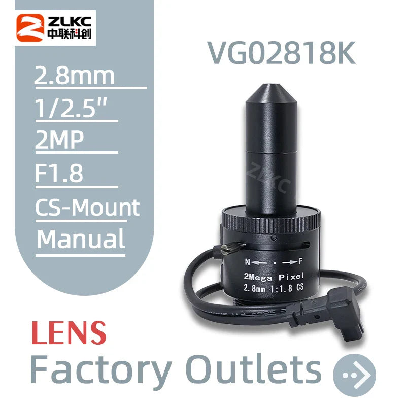 2.8mm Pinhole Lens 1/2.5 Inch FA Camera CS Mount Lens Low Distortion F1.8 Auto Iris CCTV For Machine Vision Camera 2Megapixels