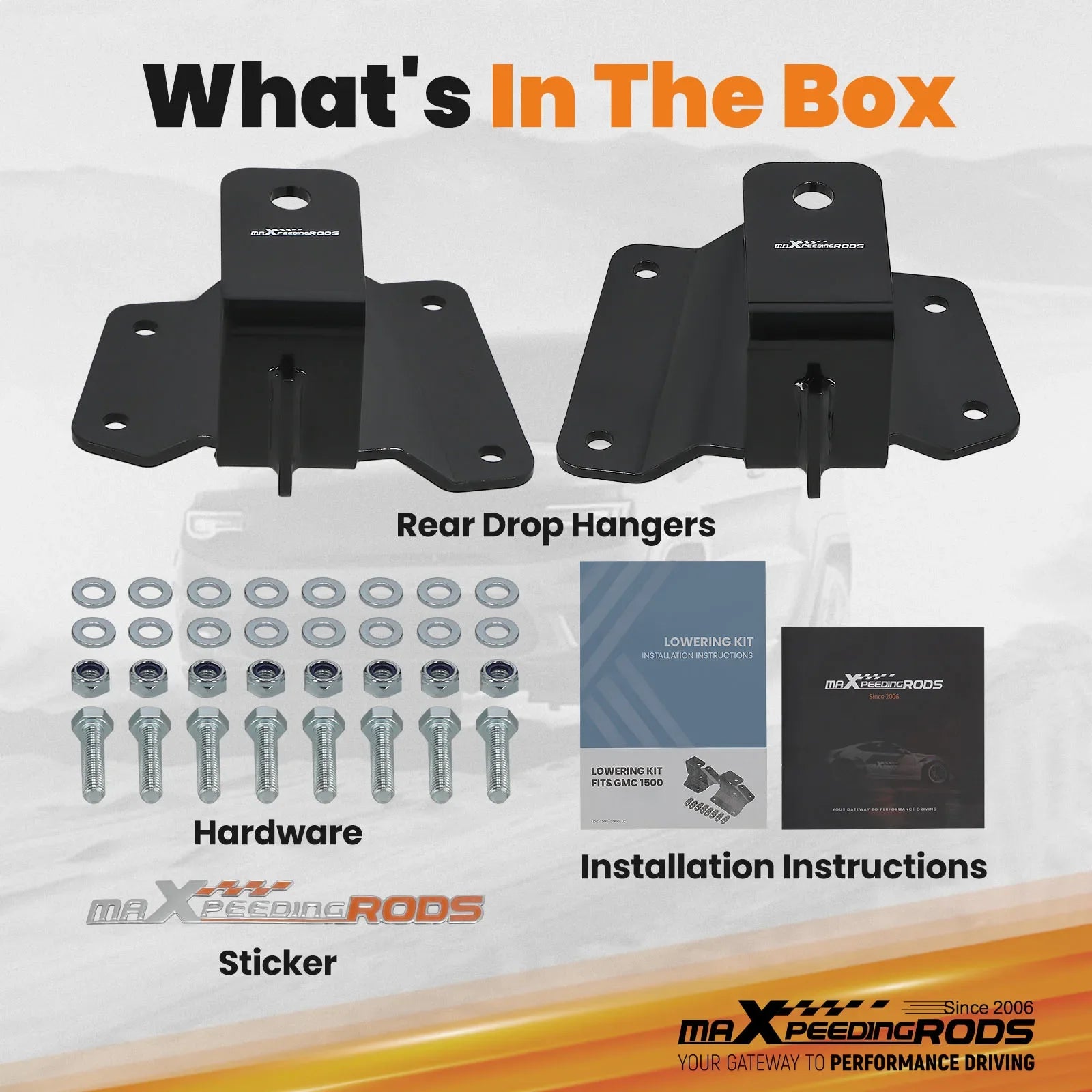 - 2" Rear Drop: lowering kit can drop truck rear by 2 inches, maintain factory ride quality and improved performance and control
