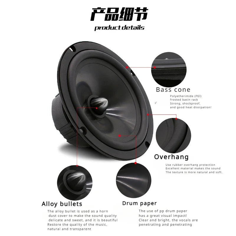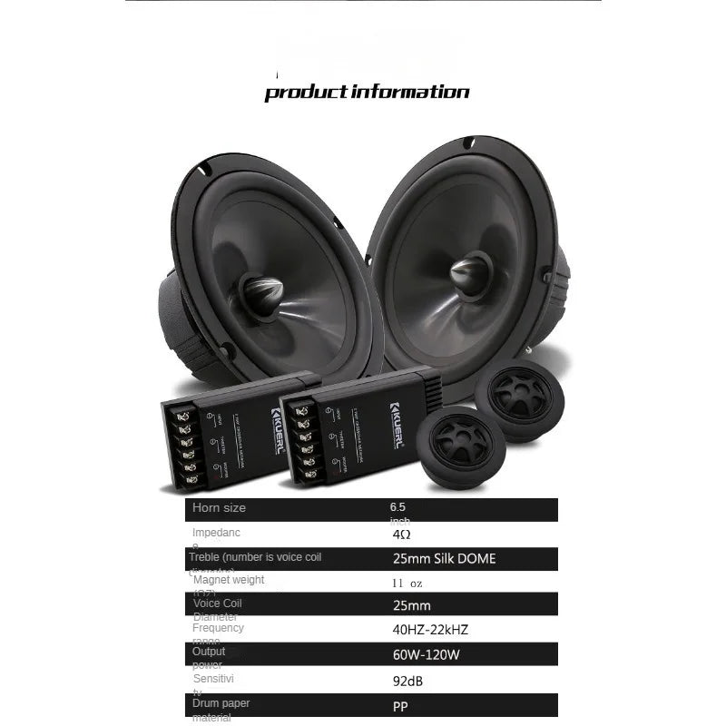 2 Way Car Audio Speaker 12v Max 120W Car Component Speaker 6.5 Inch Sound System Car Door Speaker Set