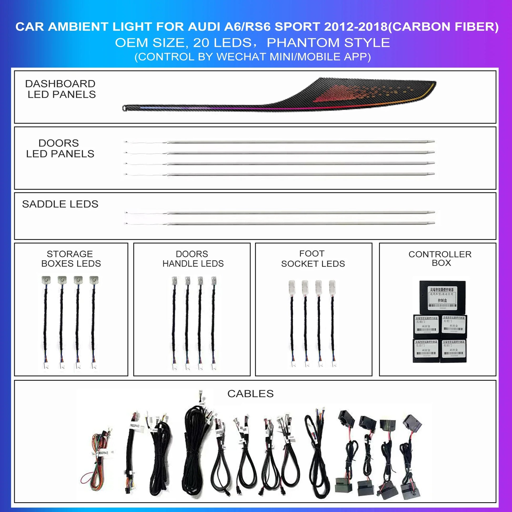 Seller Recommendation For You For Audi 2012-2018 A6/RS6 Carbon Fiber 64 Colors Symphony RGB Ambient Lights Car Interior LED Decoration Atmosphere Lamp 20 in 1 Product Details: