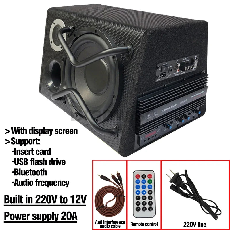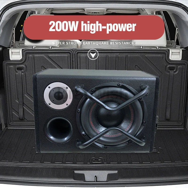 200W 10 Inch Bluetooth Trapezoidal Subwoofer Car Audio Power Active Subwoofer Speaker Car Woofer 12/220V with Remote Control