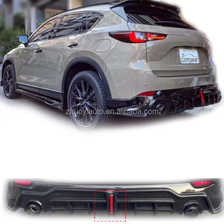 2024 New Rear Bumper Diffuser Exhaust with LED Light For Mazda CX-5 2020-2023 Carbon Fiber Car Tuning Accessory Bodykit Parts pp