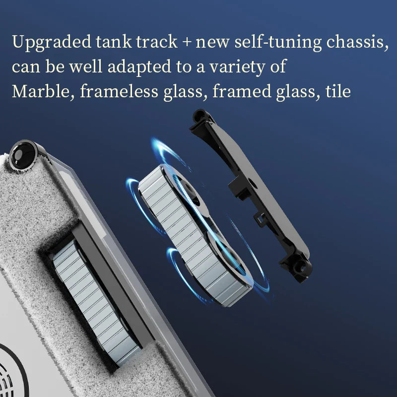 - Upgraded tank track + new self-tuning chassis,can be well adapted to a variety of Marble, frameless glass, framed glass, tile