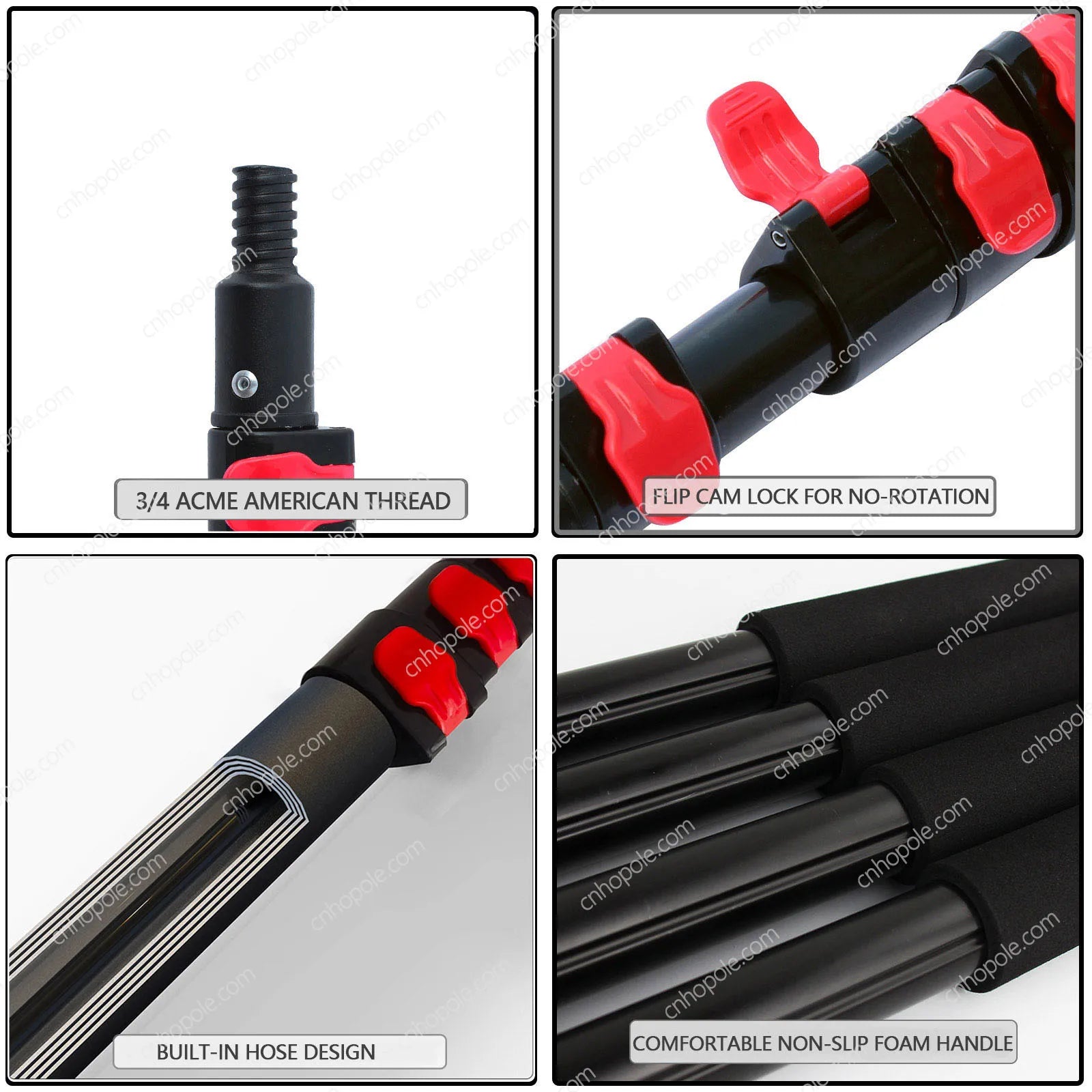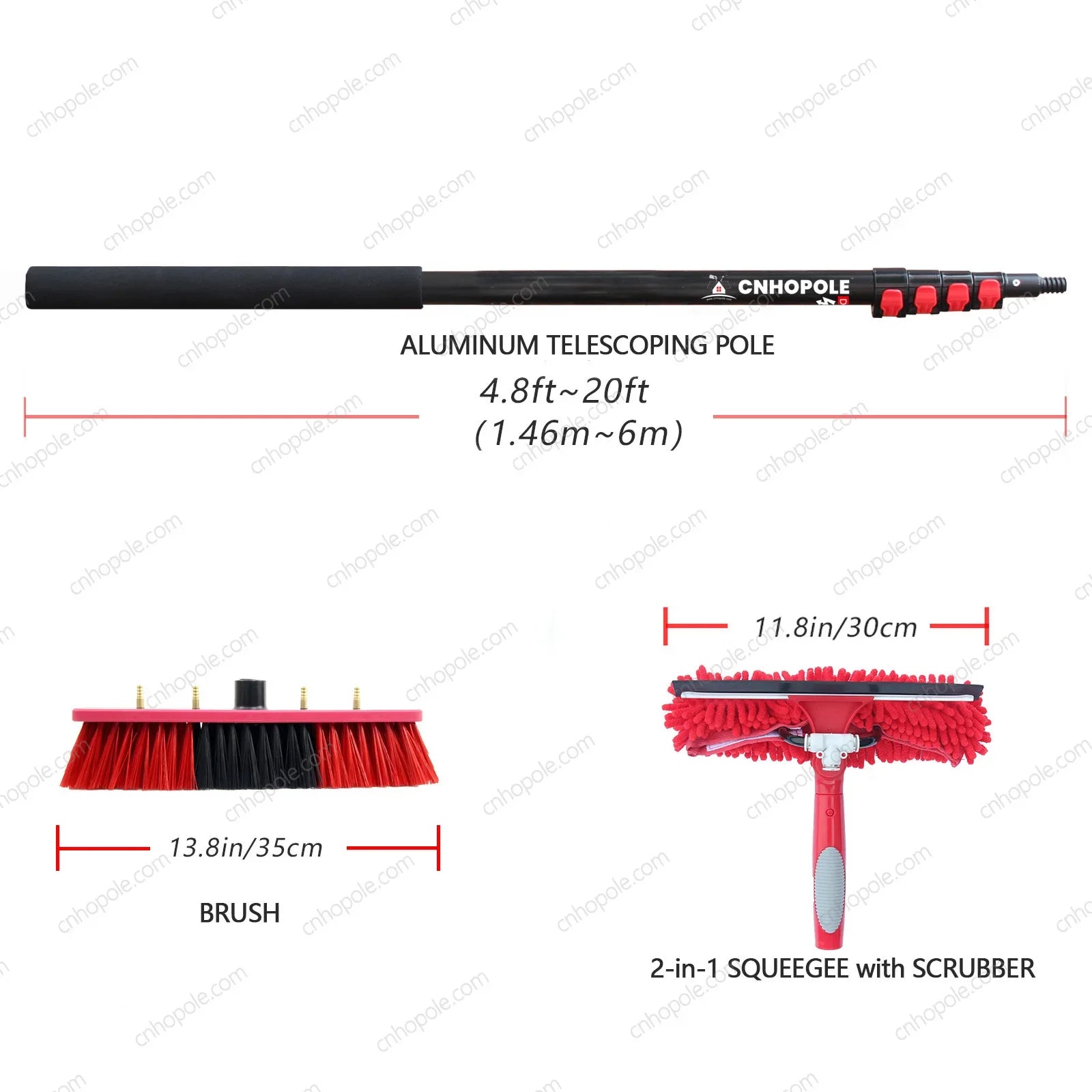 ROFESSIONAL TELESCOPING WINDOW CLEANING POLE: provides up to 20 feet of reach –strong and light-weight extendable window cleaning pole is a high-quality, telescoping pole with 3/4 ACMEthread –use with a wide variety of attachments for household high window cleaning/roof ceiling cleaning/photovoltaic panel cleaning and more.It can be locked at any height, such as 3m/4m/5m/6m SAFETY WITHOUT LADDER – FAFE HIGH CLEANING:Includedtelescopic Pole (20 feet) and Twist-On water flow through brush head Window cleaning kit twists onto 5-Stage& extends to any length to20 Feet