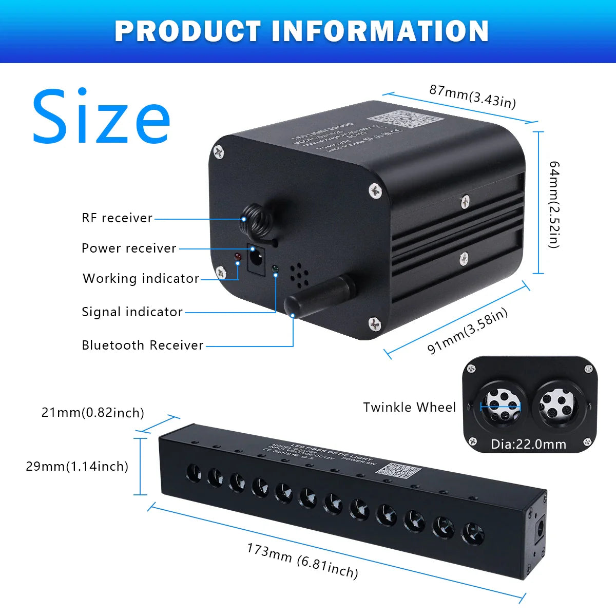 - 1 x 20W RGBW Twinkle light engine (Bluetooth APP + Music Control)