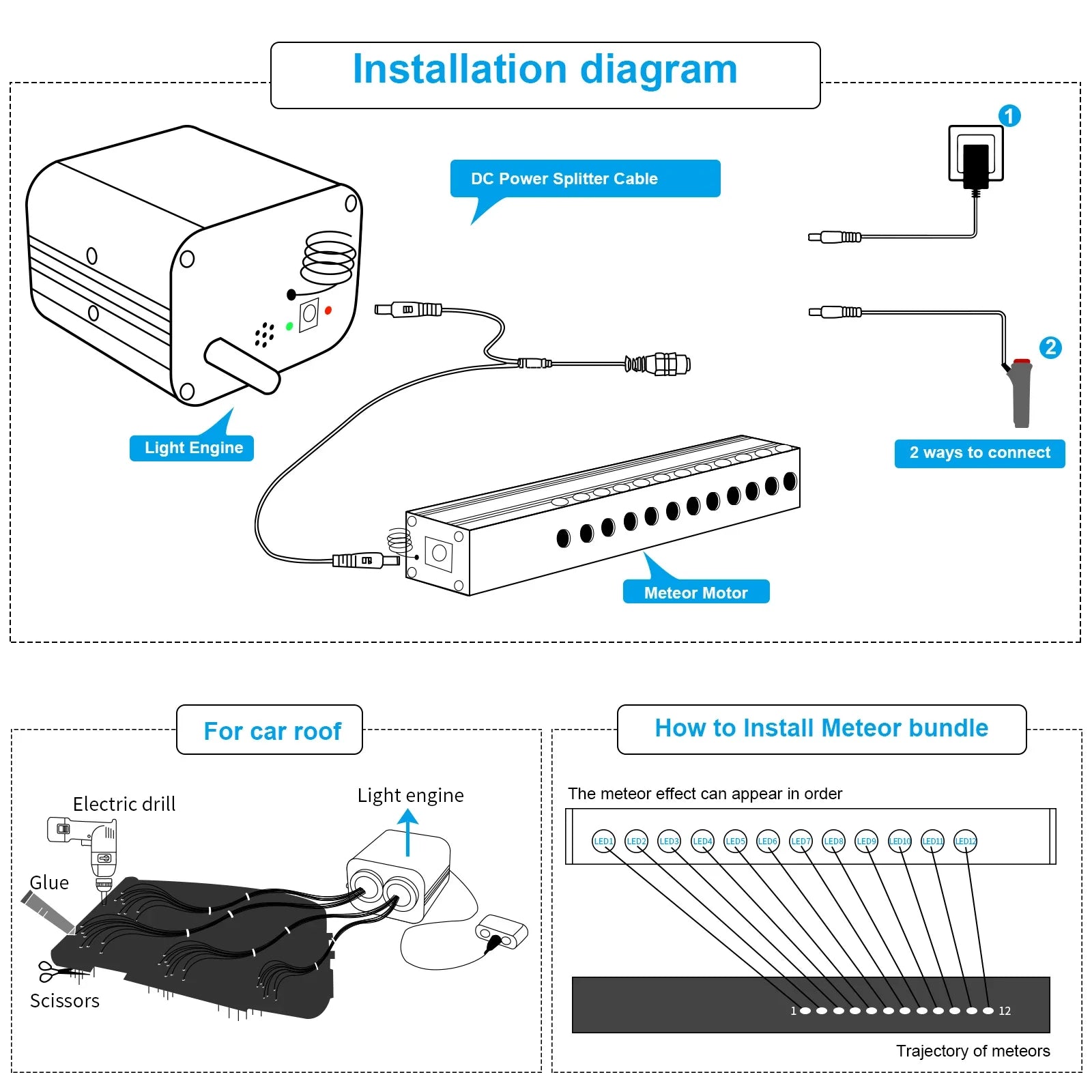 - 6.RGBW shooting star and Twinkle star led together