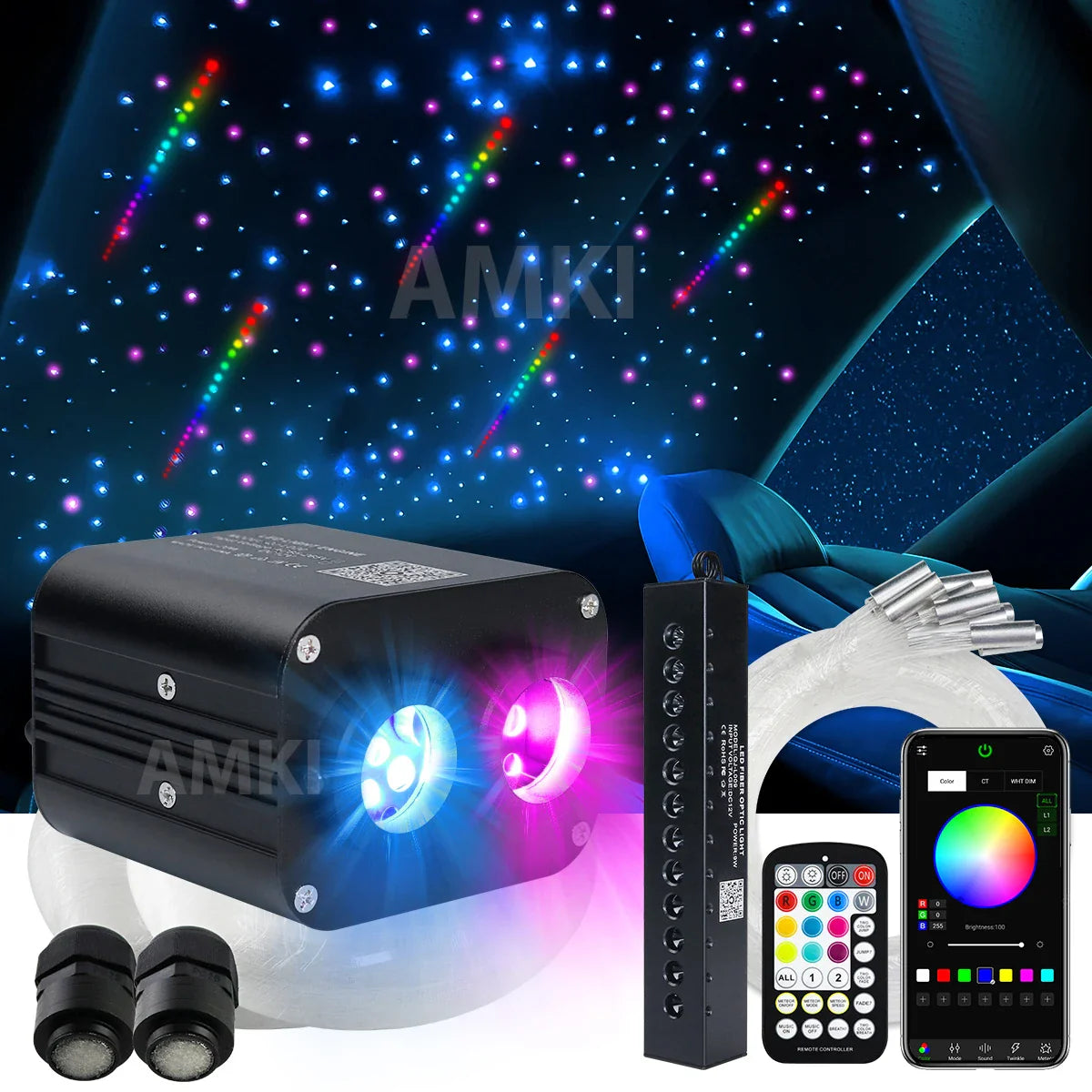 20W Twinkle Car Roof Star Fiber Optic Light with RGBW Shooting Meteor Effect APP Car Led Interior Lights Starry Sky Ceiling 20W RGBW Twinkle Fiber Optic Light with RGBW Shooting star Techincal Specification: Twinkle Fiber Optic Light