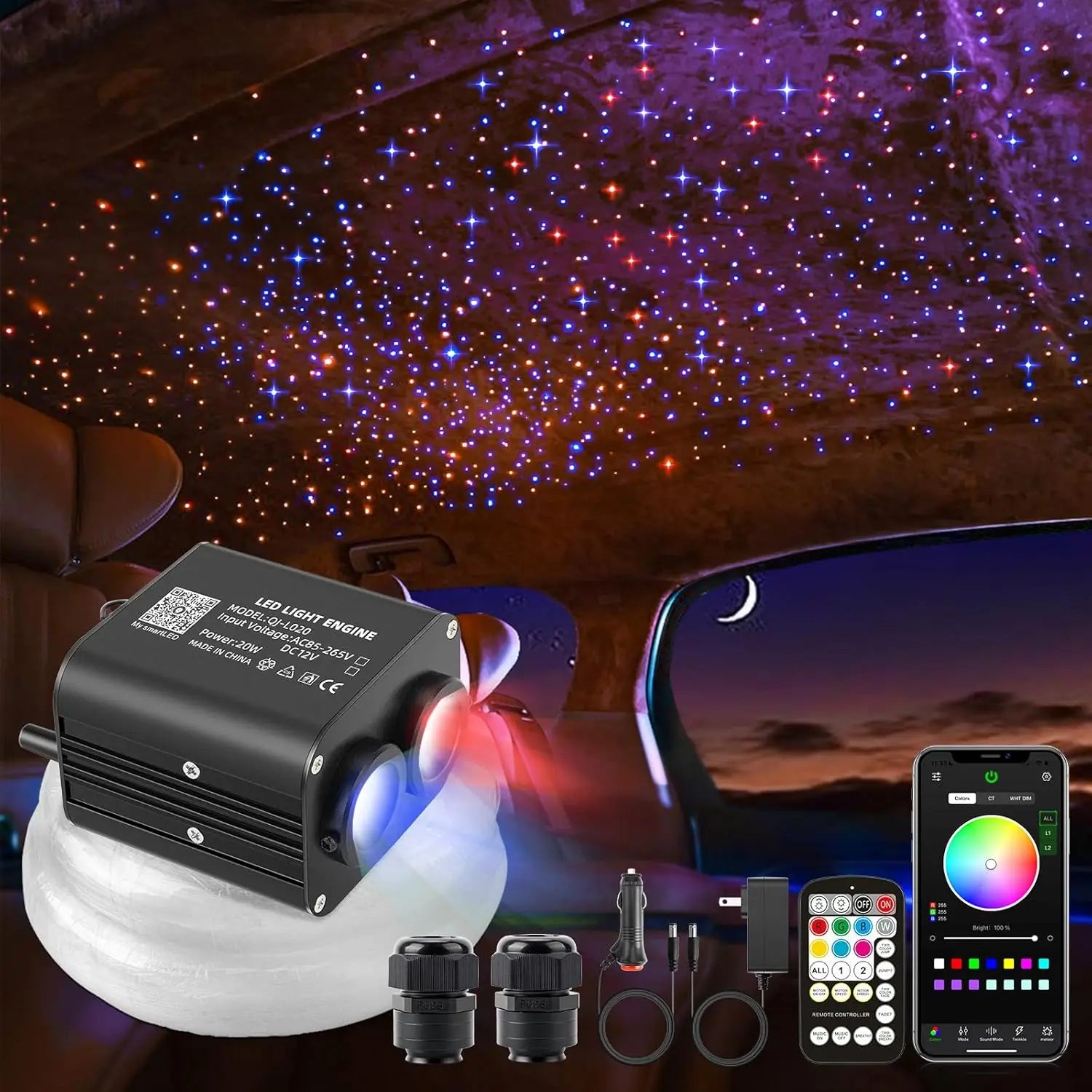 20W Twinkle Starlight Headliner Kit, Star Lights for Car Roof & Home Decoration, Fiber Cable 550pcs*0.03in*9.8ft Star Light LED FIBER OPTICS LIGHT KIT- High 20W power engine double-head 25mm diameter light source with RGBW lamp beads to accommodate many fibers, Quantity: 550pcs, Diameter: 0.03in, Length: 9.8ft Fiber optical cable strands are made of good PMMA plastic, safe, non-conductive, waterproof, color rendering, long lifetime Dual Color Starlight Design- New Version!