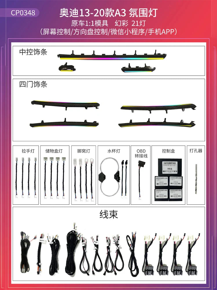 Seller Recommendation For You 21 in 1 Car Ambient Lighting Symphony 64 Color Audi A3 S3 RS3 8V 2013-2020