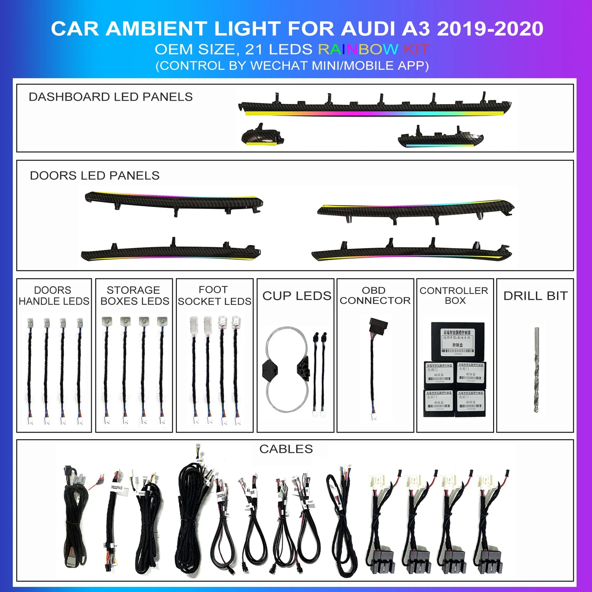 21 in 1 Symphony Car Ambient Light For Audi A3 2013-2020 without Air Vents Dashboard Door Decoration Atmosphere Lamp APP Control