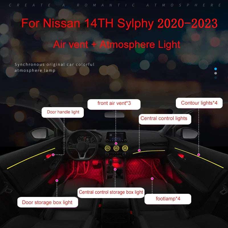 The Black Friday Big Promotion For You 24 in 1 RGB Symphony Car Ambient Lighting for Nissan 2020-2023 14th Generation Sylphy LED Interior Decoration Car Accesssories