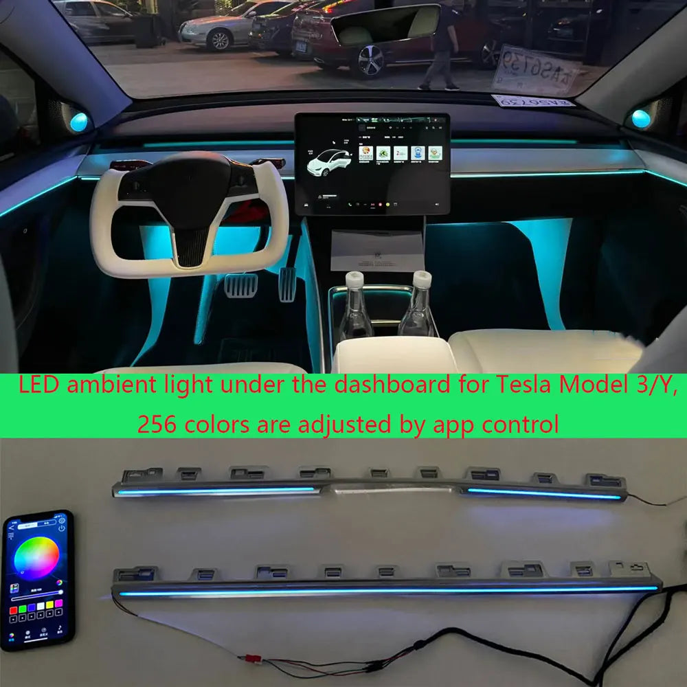 256 colors LED ambient light for Tesla model 3/Y under the center dashboard LED ambient light app control adjustment color