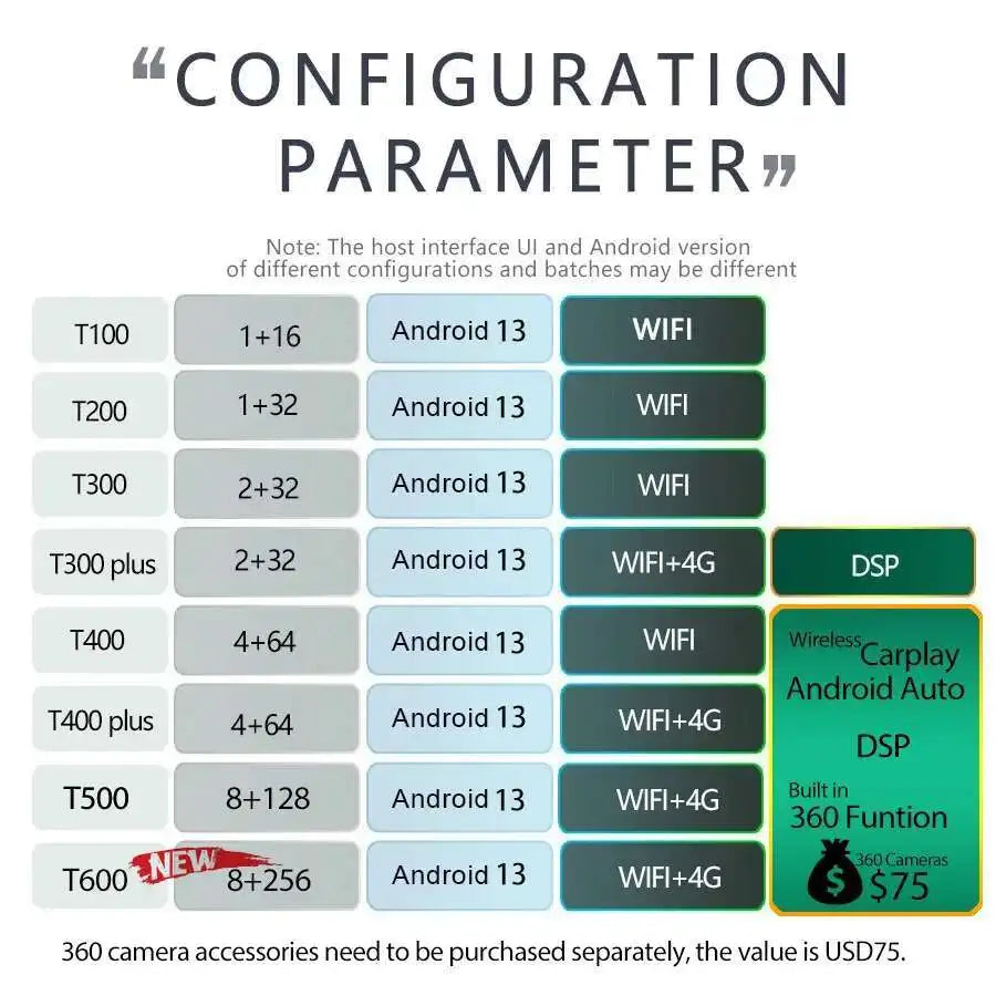 Configuration Comparison Table- virider T300 Plus T400 Plus/