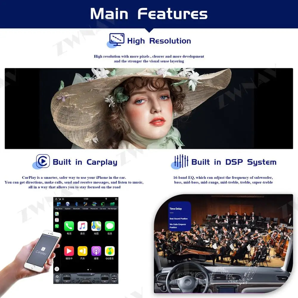 - 3.Screen Resolution:High resolution, Capacitive 5 Points Multi-Touch, with Dual Zone function
