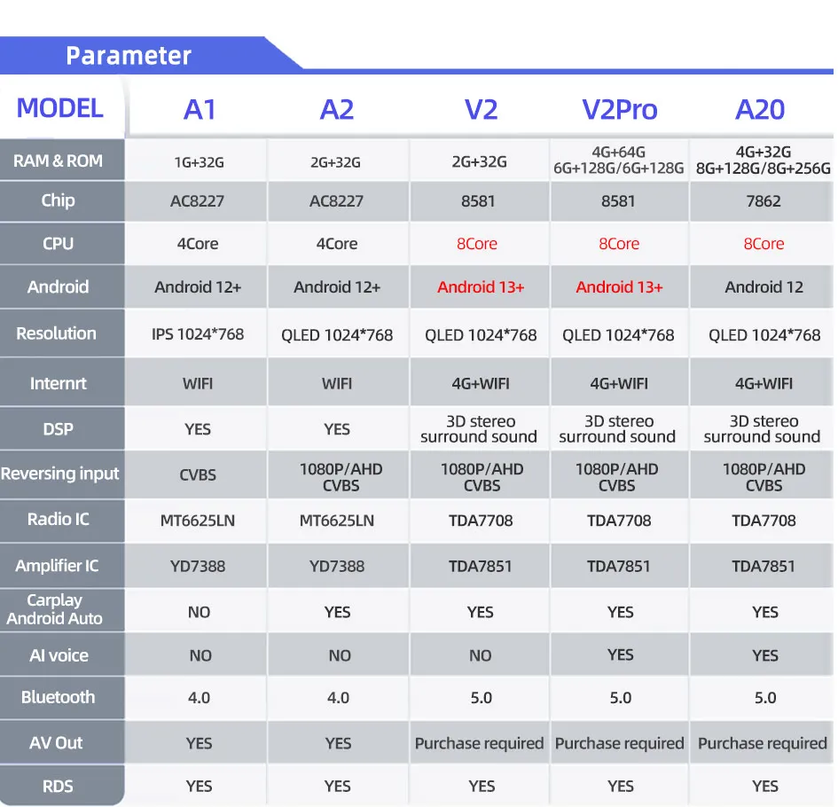 V2/V2Pro model features: