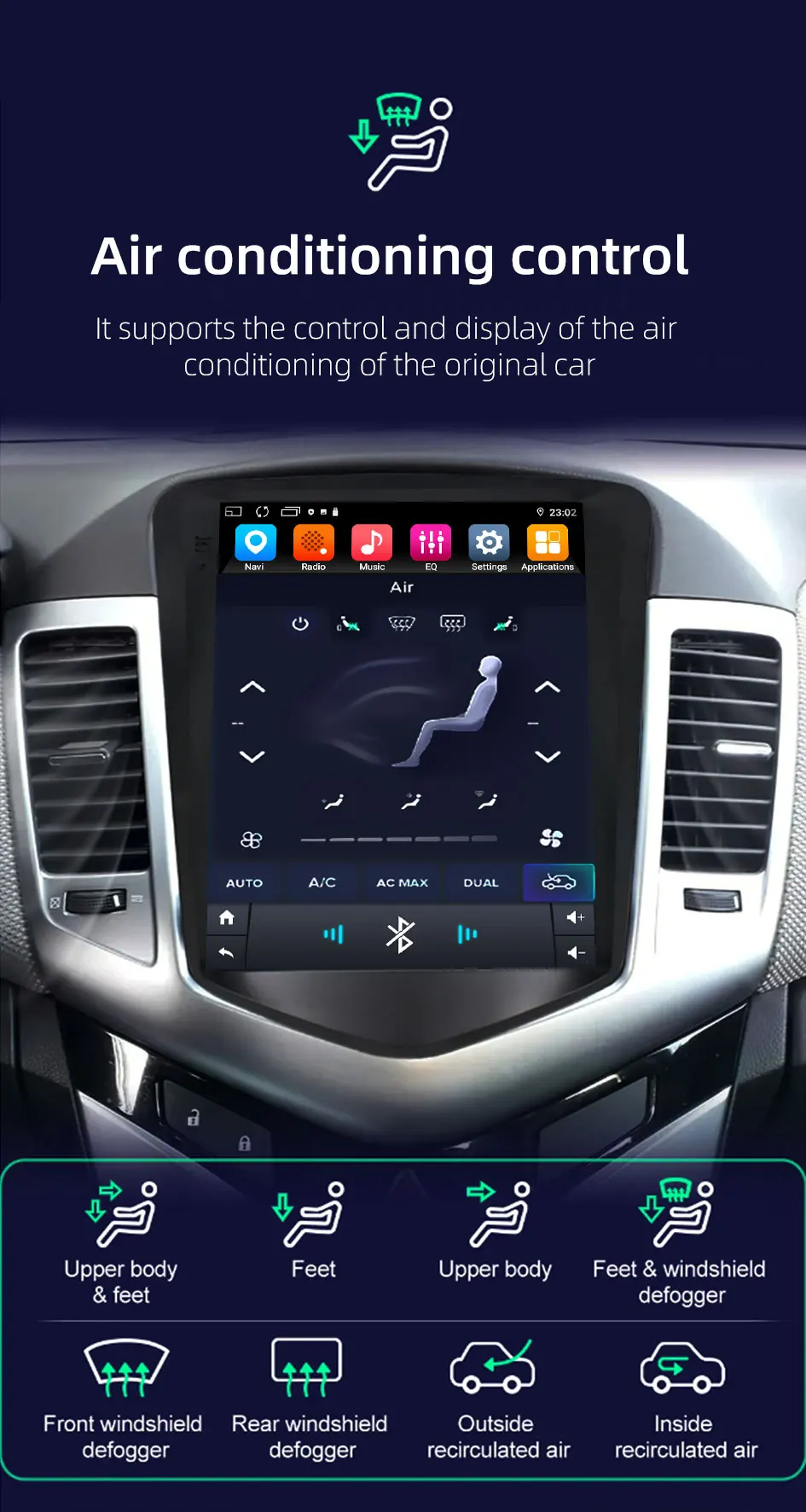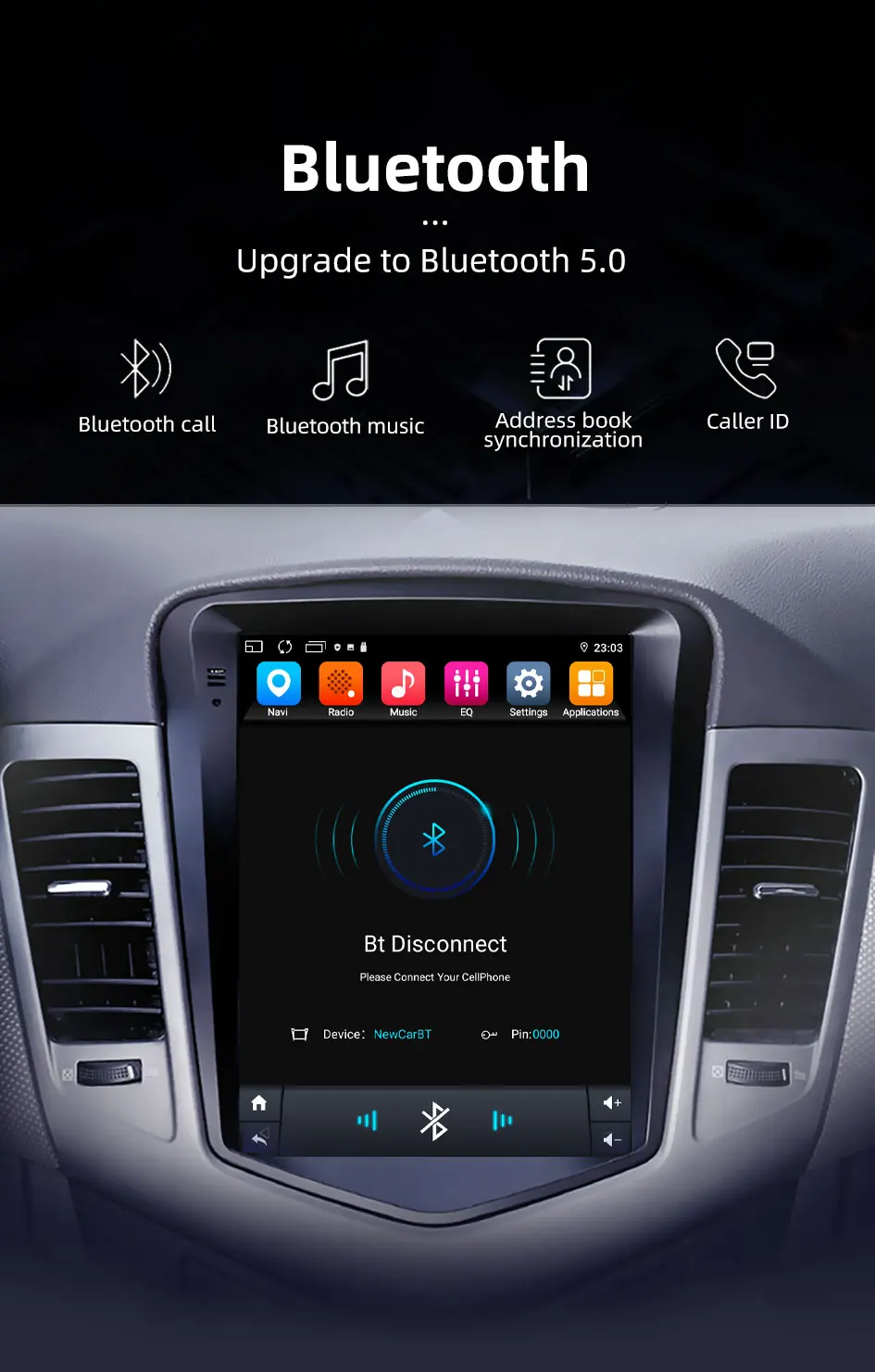 Built-in bluetooth 5.0, support bluetooth phone, bluetooth music, address book.