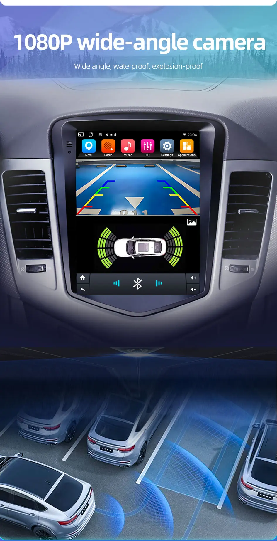 1080P reversing camera, clearer display, large angle, more comprehensive field of vision.