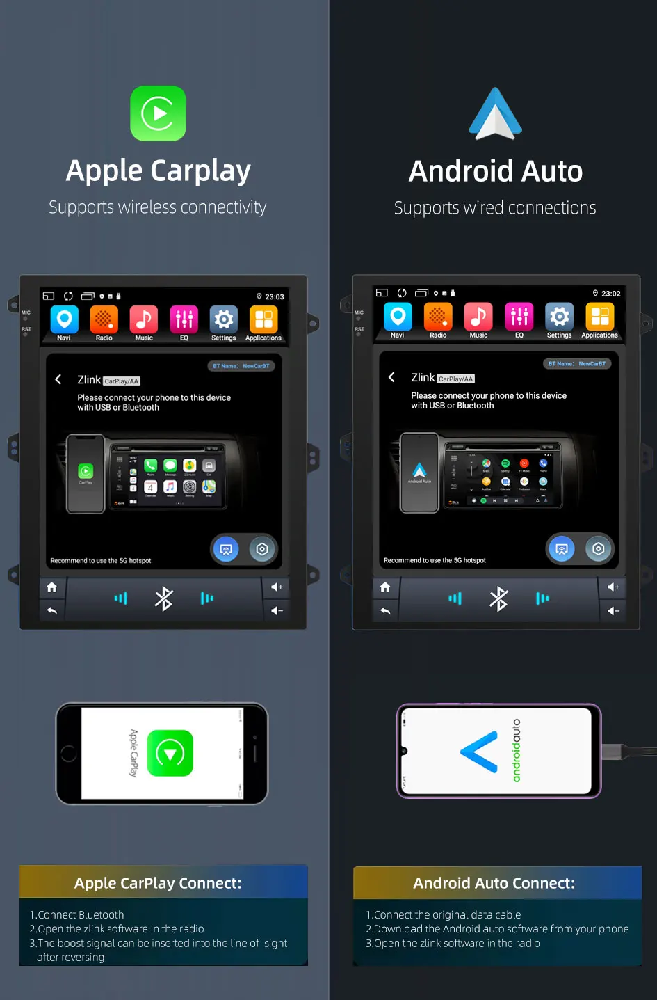 Support Carplay,Support Android Auto.
