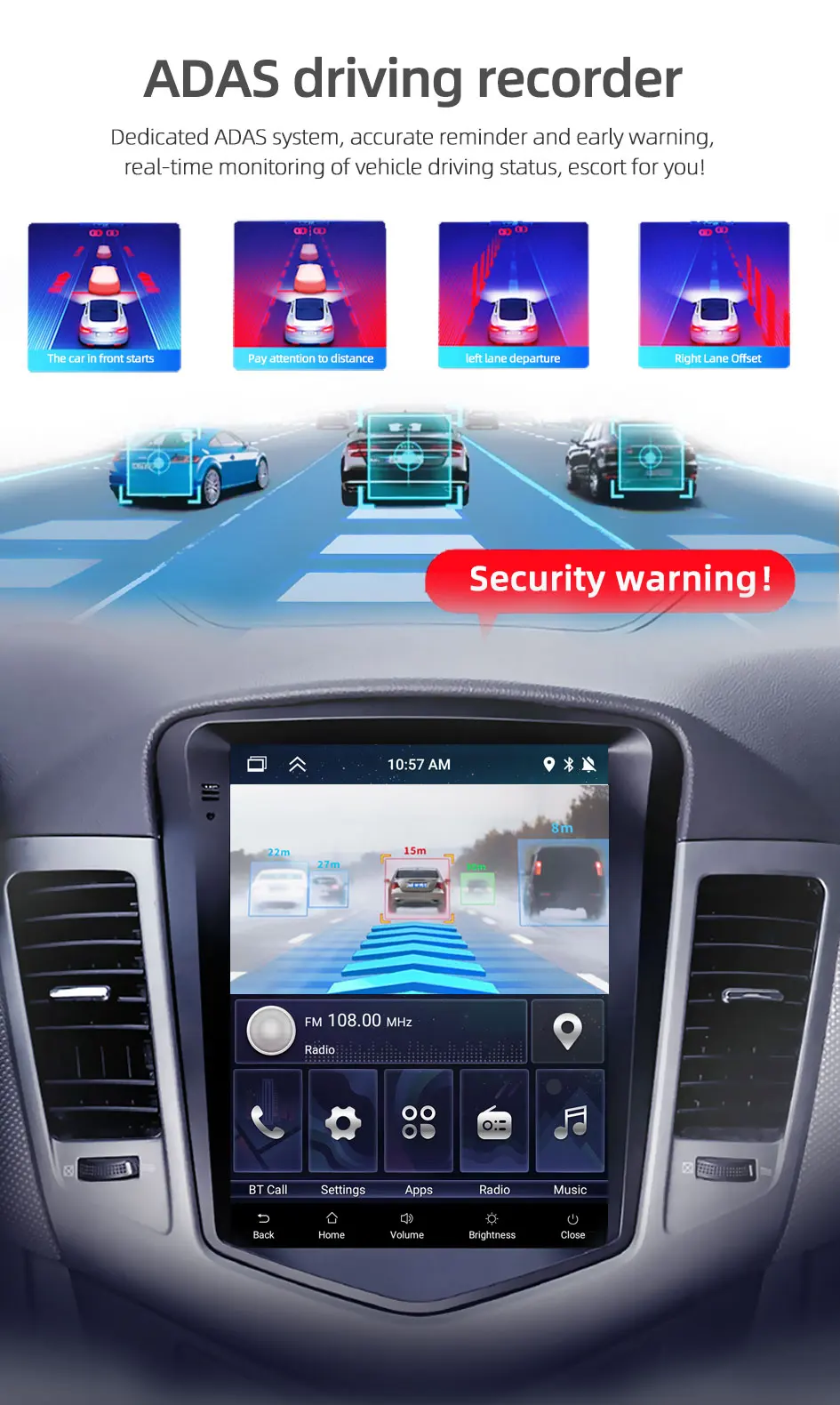 ADAS driving warning function, if you are too close to the vehicle in front or deviate from the current driving track, it will alarm and remind, making your driving safer!