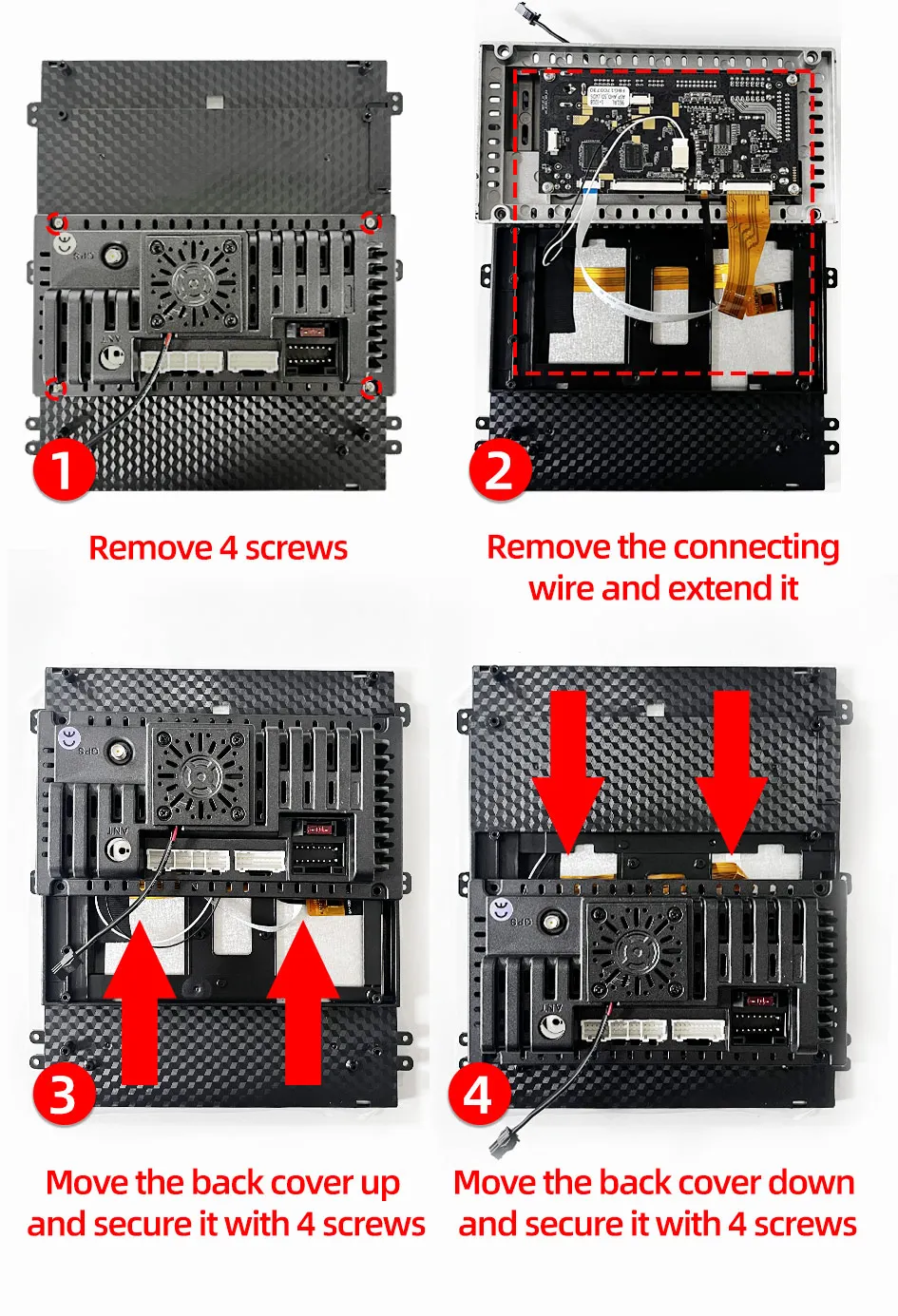 The Cruze model requires moving the position of the back cover.To prevent it from reaching the middle position of the central controller, your back cover can be easily moved up and down by following the steps below.