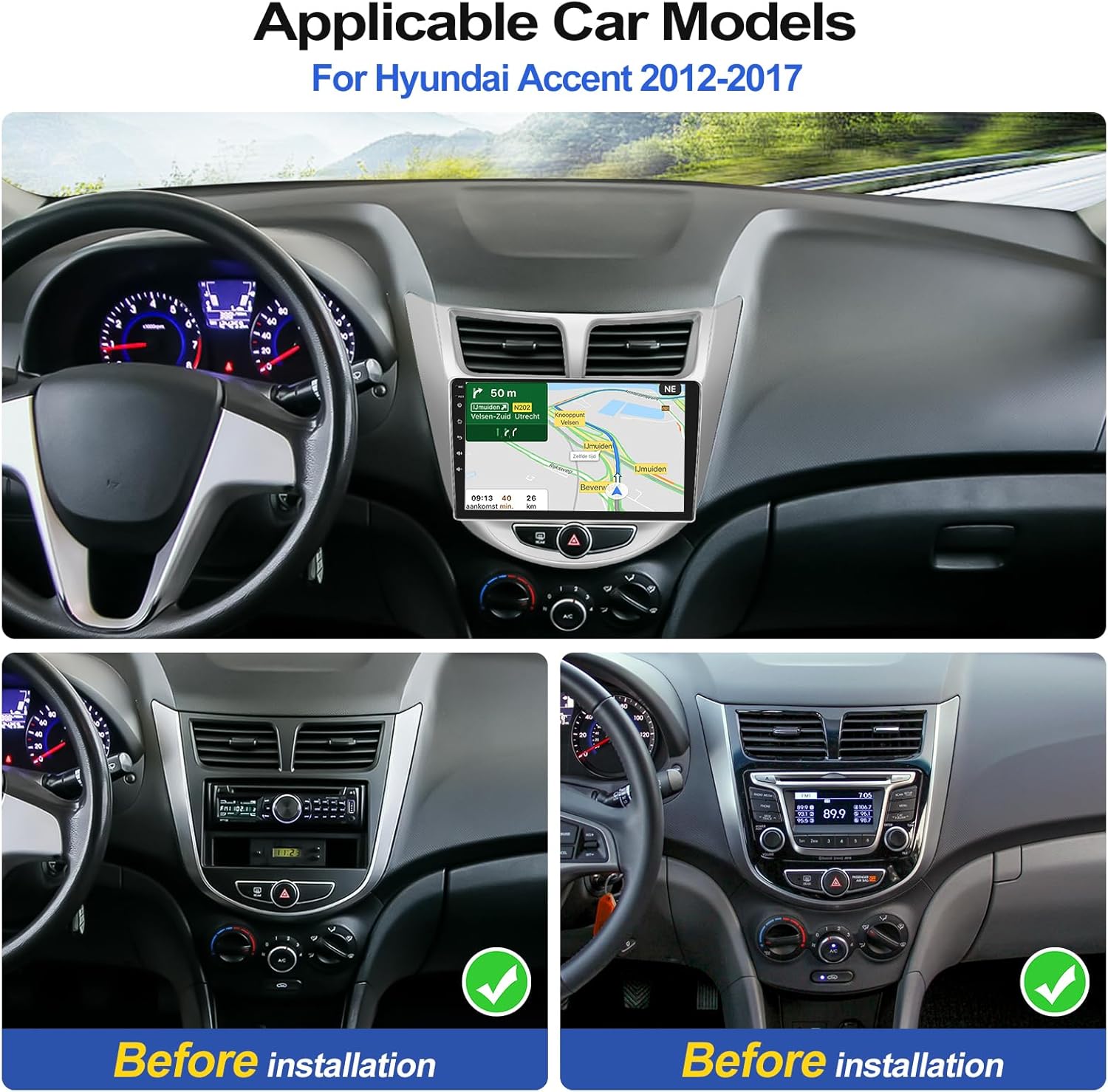 2G+32G Android 13 Car Stereo for Hyundai Accent 2012-2017 with Wireless Carplay Android Auto 9" Touchscreen Car Radio with GPS Navigation WiFi Bluetooth FM/RDS Radio Head Unit with AHD Backup Camera