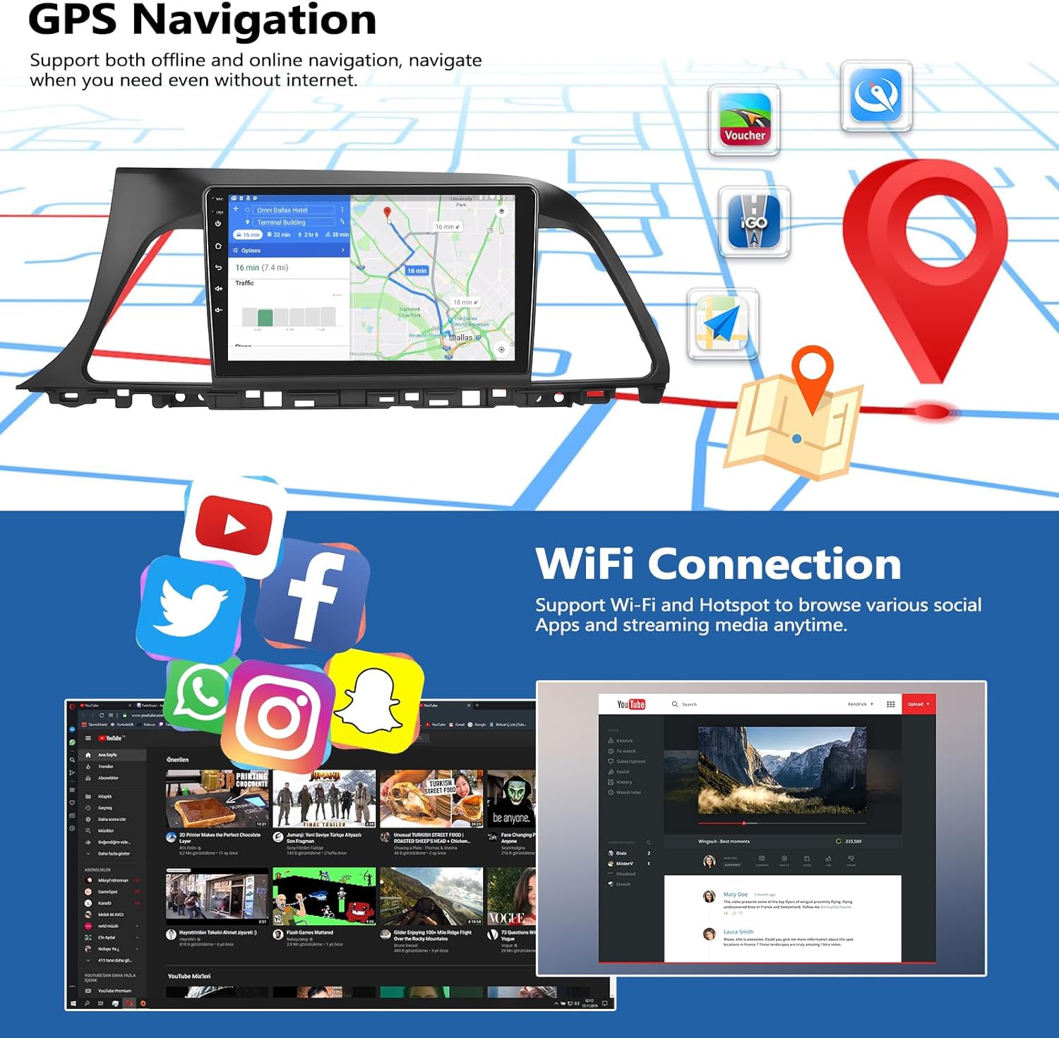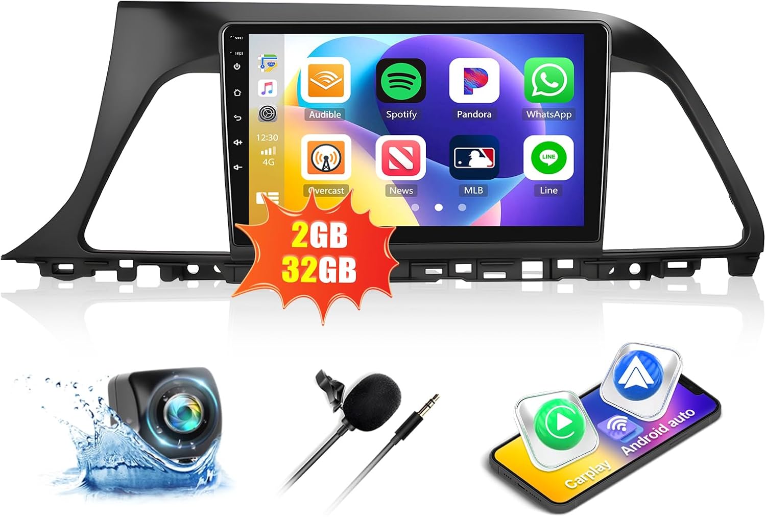 2G+32G Car Stereo Radio for Hyundai Sonata 2015 2016 2017 with Wireless CarPlay Android Auto Android 13 Car Radio 9" Touch Screen Bluetooth Radio with GPS Navigation FM RDS Backup Camera Head Unit