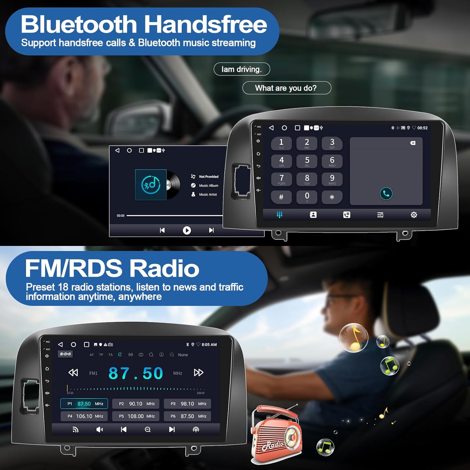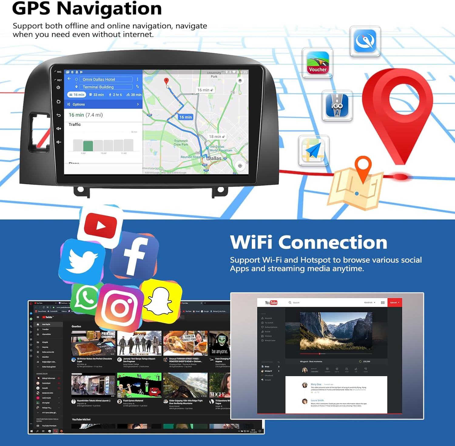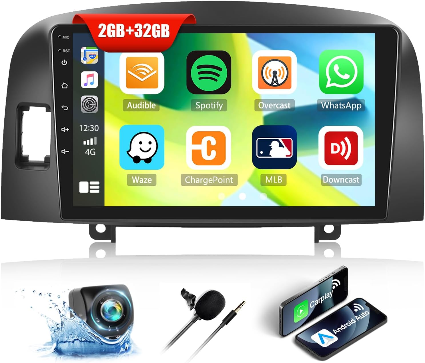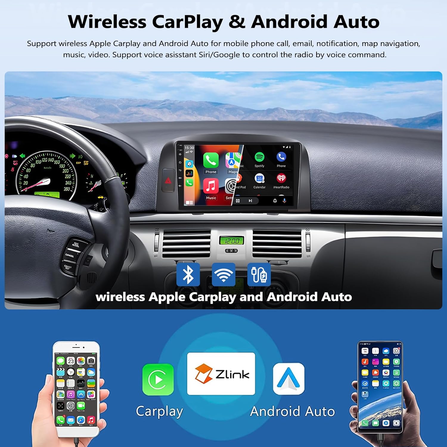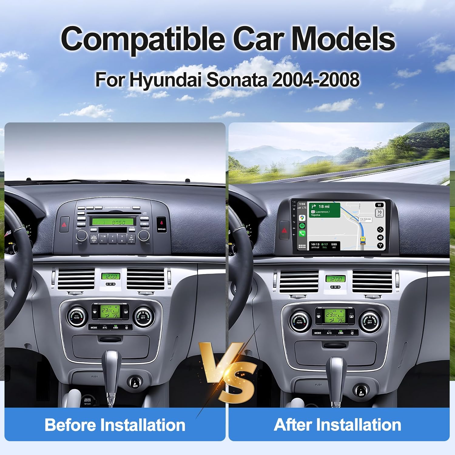2G+32G Car Stereo Radio with Wireless Apple CarPlay Android Auto for Hyundai Sonata 2004-2008 9" Android Touch Screen Bluetooth Car Radio with GPS Navigation WiFi Backup Camera FM RDS Head Unit