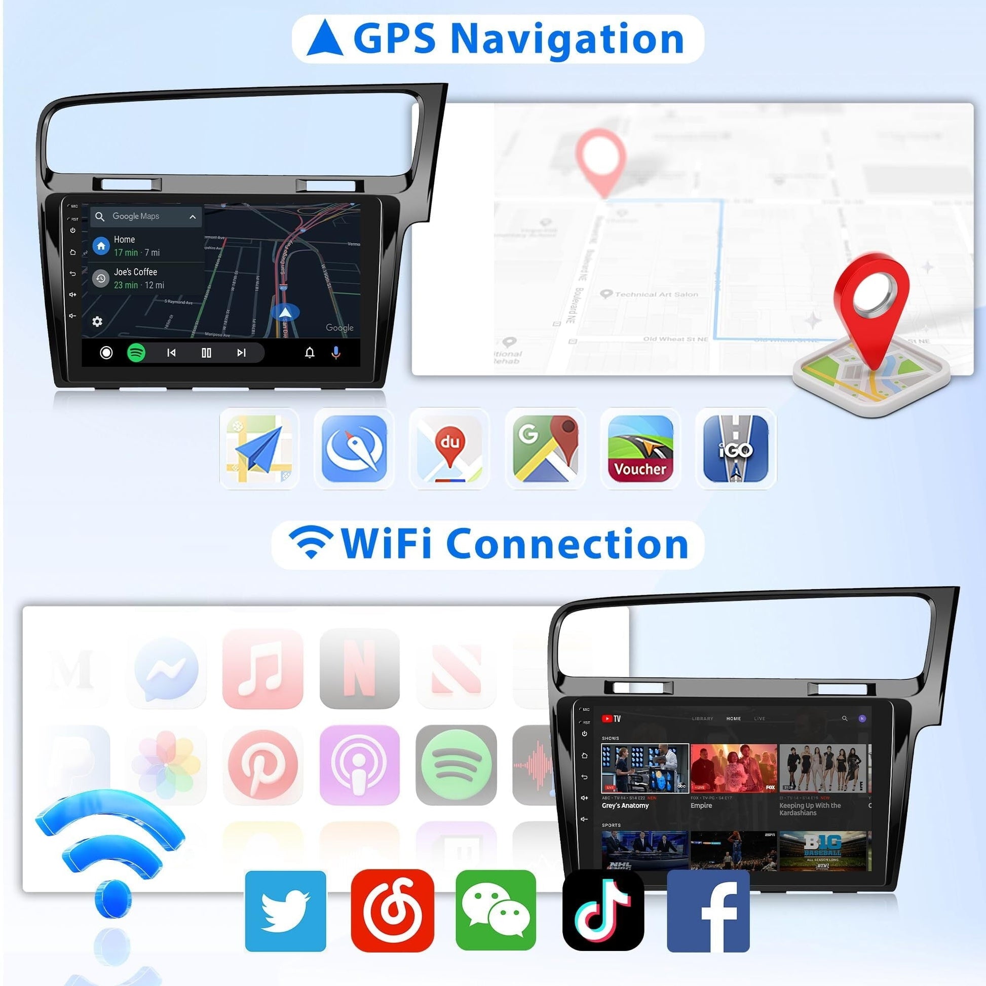 Built-in WiFi/GPSThis for VW Golf 7 android car stereo can connect to wifi or your phone's hotspot for free entertainment mode, including Twitter, Facebook, Gtalk, Gmail and other services.Then car audio can support online navigation,or download free map of any country you need for offline navigation.